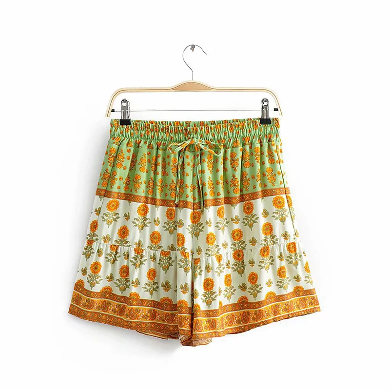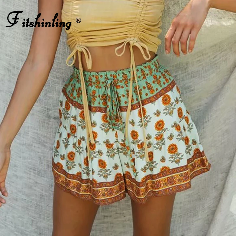 Шорты женские с высокой талией и богемным принтом, в этническом стиле