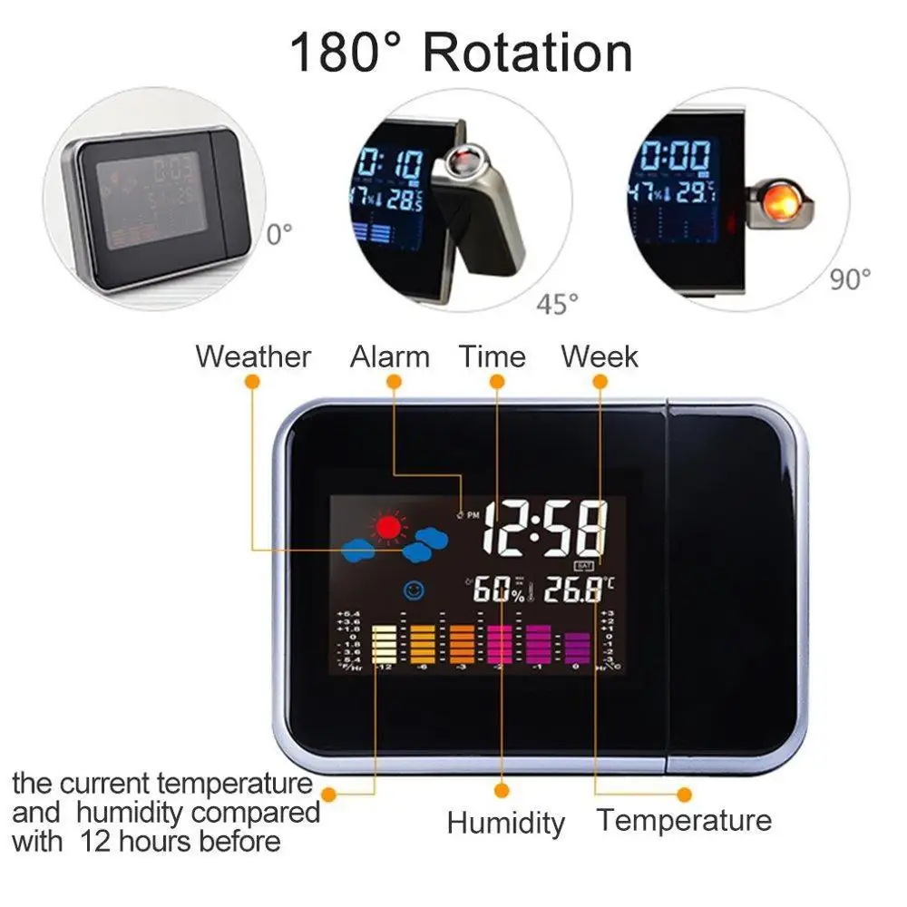 СВЕТОДИОДНЫЙ цветной экран, будильник, термометр, настольные часы с отображением времени и даты, прогноза погоды, проектор, календарь, зарядное устройство USB, настольные часы