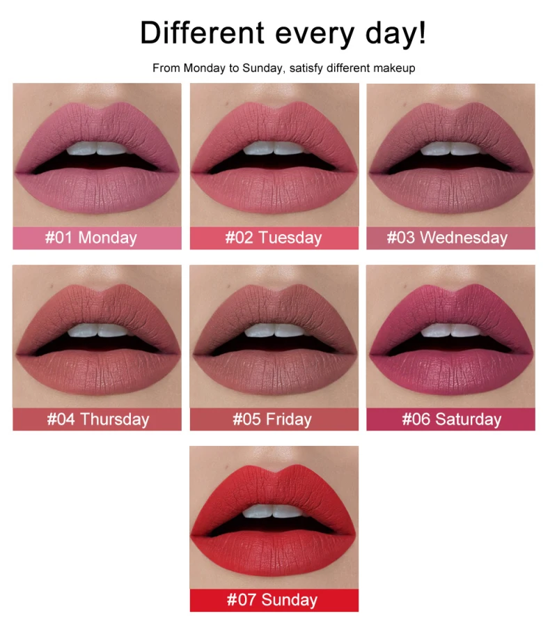 3. Семь номеров цветов объединены в коробку, которая может соответствовать цвету помады, который не повторяется через неделю, что дает людям ощущение яркости.