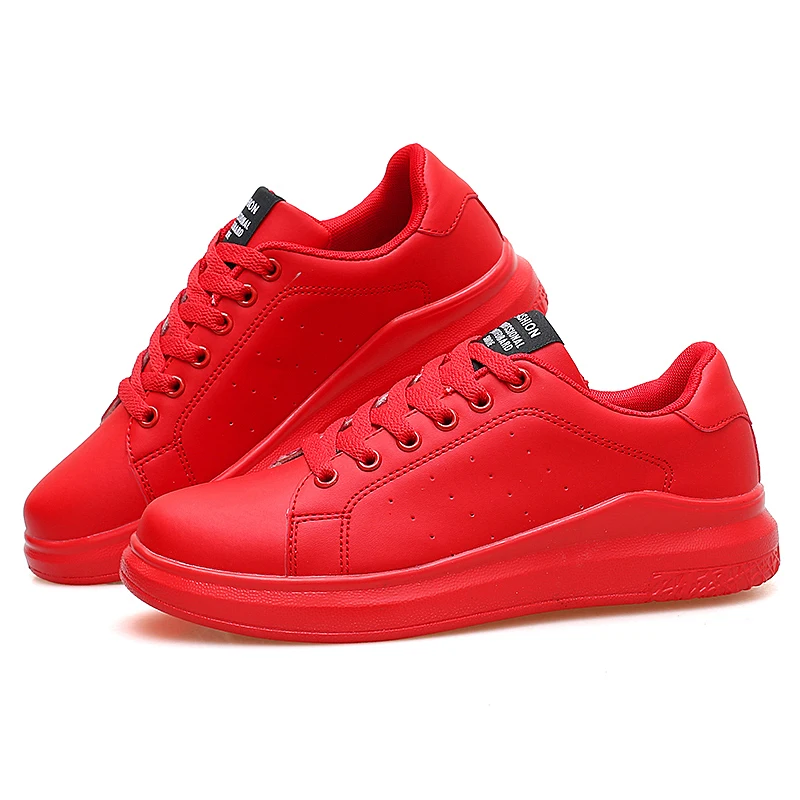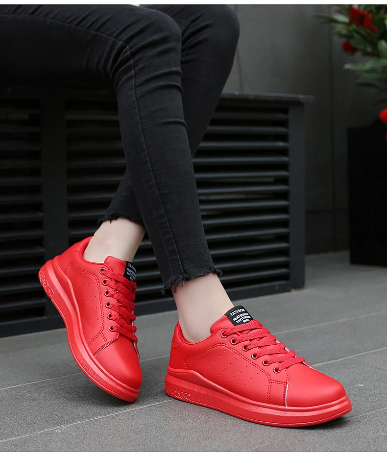 Женские кроссовки на шнуровке, Красные кроссовки из вулканизированной кожи, дышащая повседневная обувь на плоской подошве для прогулок, 2020