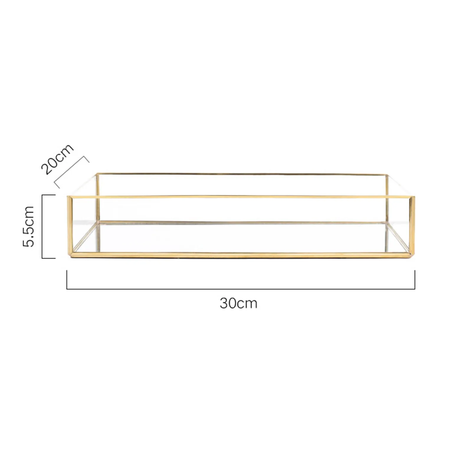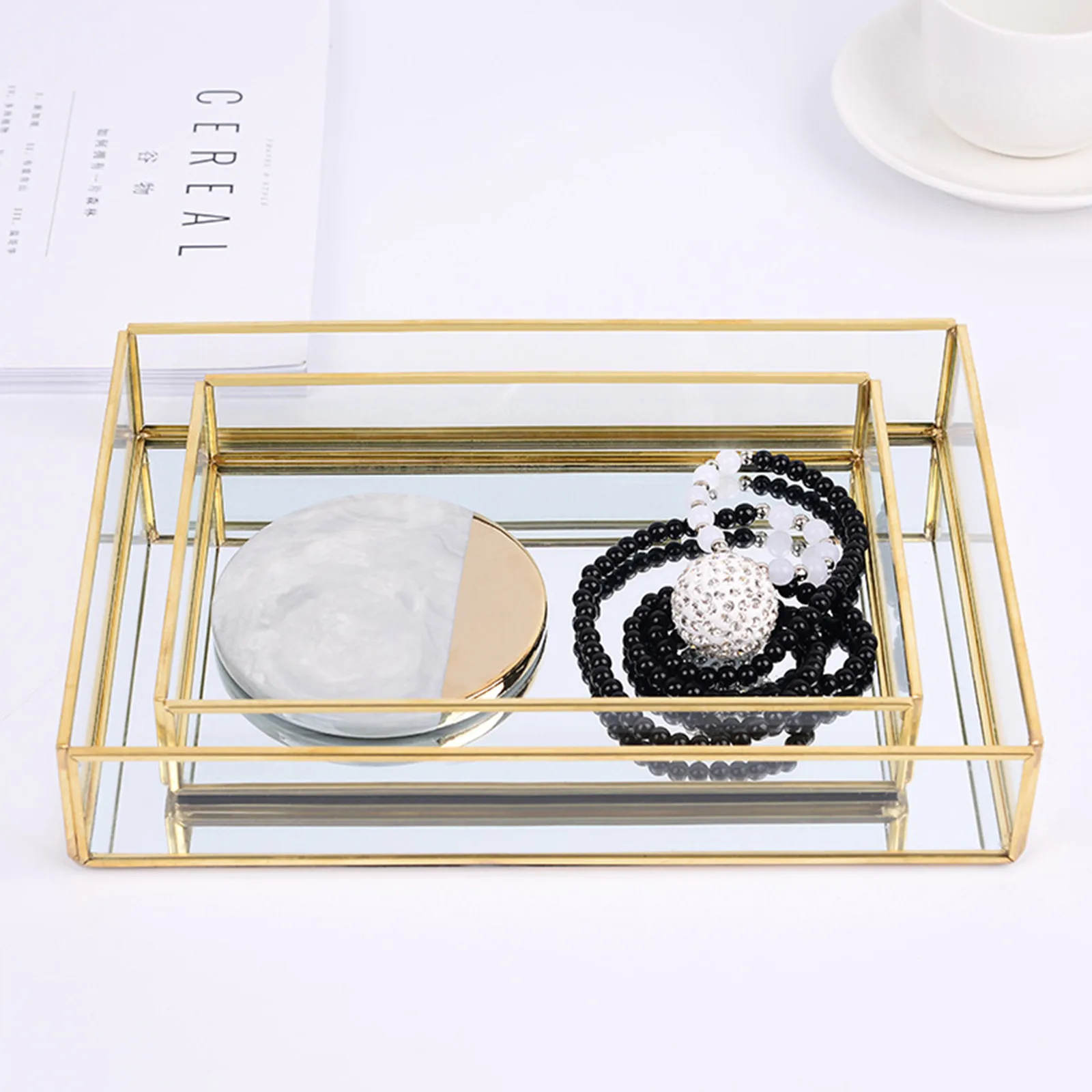Золотой зеркальный лоток винтажный Европейский стеклянный металлический лоток для хранения Золотая прямоугольная тарелка для фруктов настольная тарелка для ювелирных изделий # g30