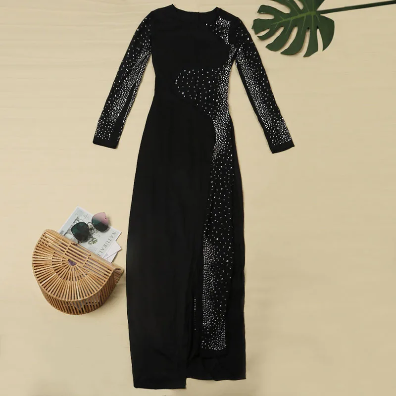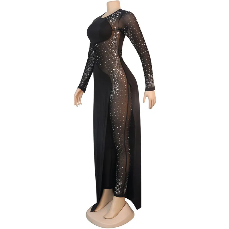 Красивый комбинезон Beyprern с кристаллами (черный), блестящий облегающий сетчатый комбинезон с блестками, цельный комбинезон, Клубная одежда для вечерние