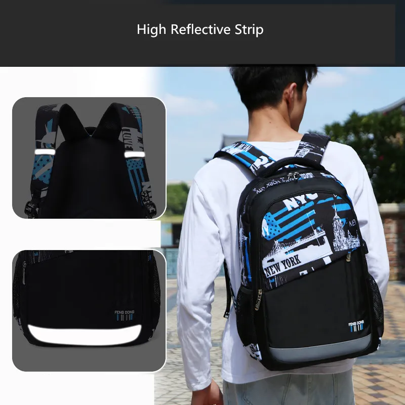 Рюкзак для старших классов Fengdong для мальчиков, набор вместительных сумок-слингов для книг, нагрудная сумка, большой туристический рюкзак со светоотражающей полосой