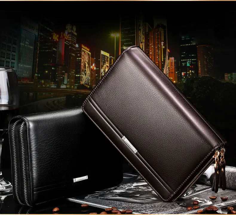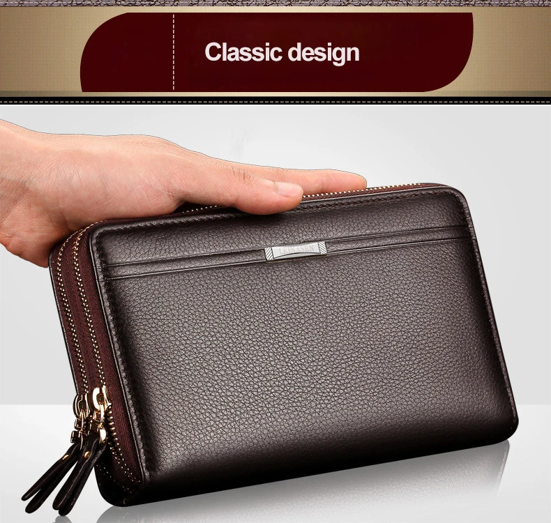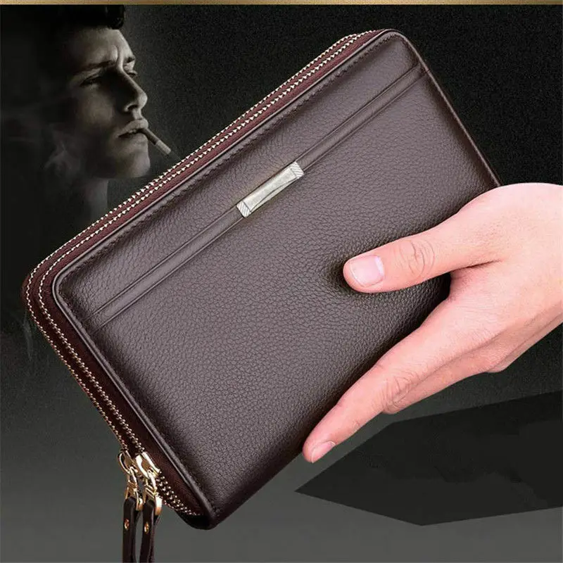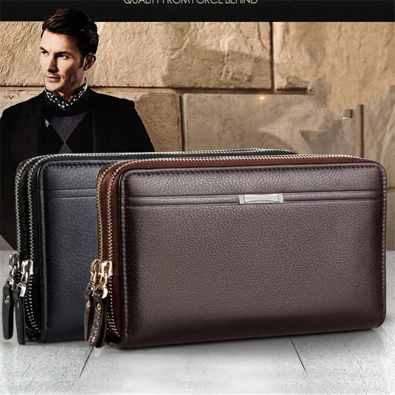 Модный классический мужской клатч из искусственной кожи, Простой деловой бумажник на запястье, кредитница, органайзер для сотового телефона, сумочка на молнии