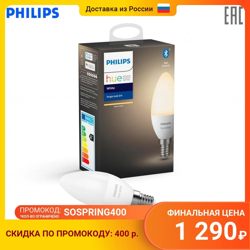 Интуитивные интеллектуальные световые решения Обеспечьте комфортный теплый белый свет в вашем доме благодаря одной умной свечеобразной лампе. Используйте Bluetooth для мгновенного включения и выключения света, регулирования яркости и выбора вариантов освещения в помещении либо подключите к лампе блок управления Hue, чтобывоспользоваться полным набором функций умного освещения.