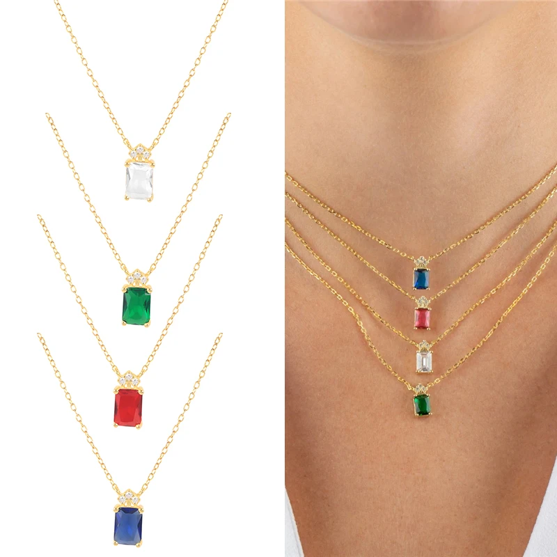 Автоклав 925 серебряное ожерелье, желтый, зеленый, голубой, темно CZ камень ожерелья для женщин вечерние подарки, хорошее ювелирное изделие, ожерелье из циркона квадратной ожерелье W5