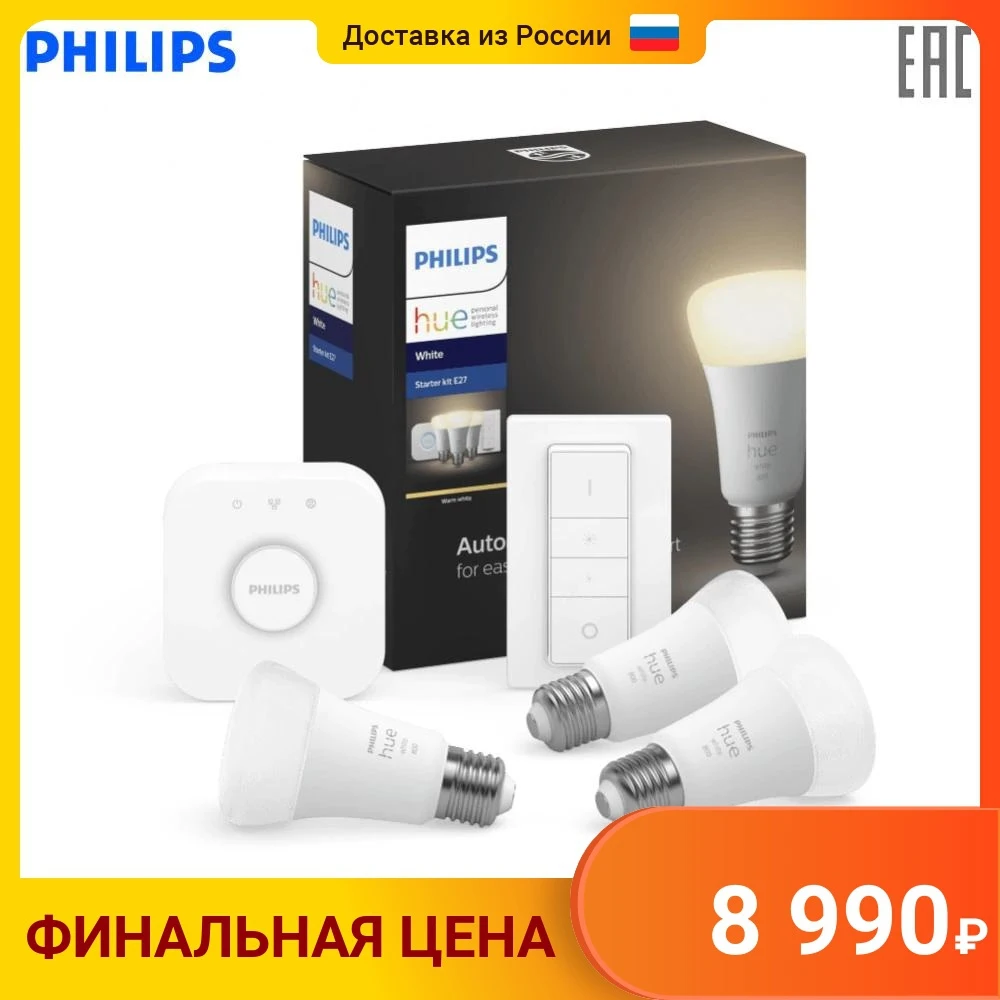 Набор из 3 белых ламп блока управления и диммера Philips HueW 929001821620 9W A60 E27 3set sw RUS