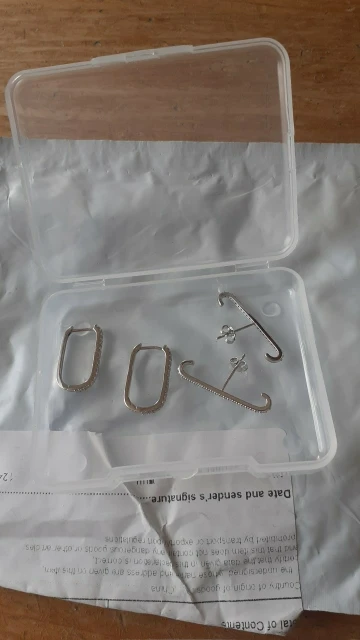 Минималистичные и шикарные серьги. Они очень тонкие, но я не разочарован. Тем не менее, Застежка кажется хрупкой, но при небольшом обращении стержень быстро выпрямляется и позволяет ему хорошо висеть на застежке. Прибыл во Францию через две недели. Я рекомендую товар и продавца тоже! Х х х