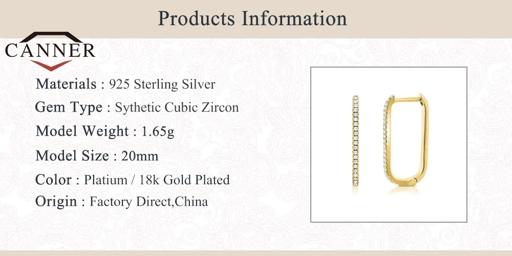 Женские U-образные серьги-гвоздики CANNER, серьги из настоящего серебра 100% пробы с цирконием, ювелирное украшение для пирсинга, 925