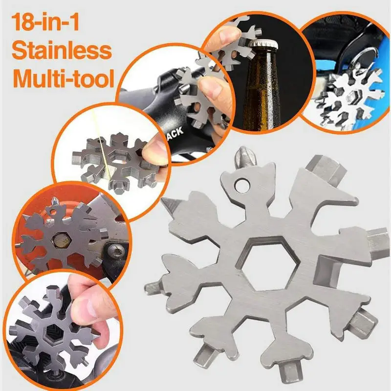 Многофункциональный инструмент 18 в 1, портативная стальная Снежинка, для путешествий, кемпинга, приключений, ежедневного использования, кемпинга, выживания, брелок в виде руки