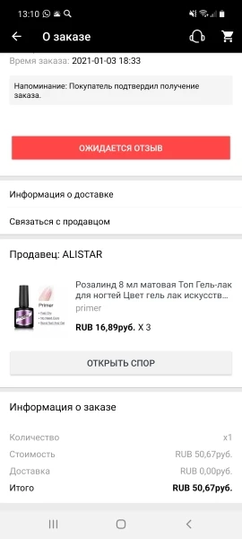 Страна: RU Color: primer Доставка: Cainiao Super Economy for Special Goods 28.01.2021