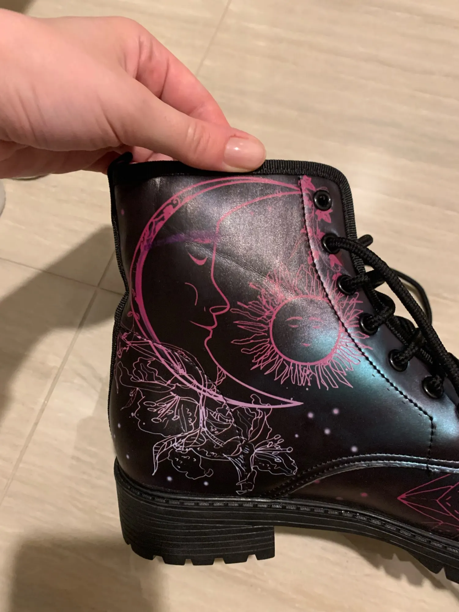 Доставка очень быстрая, качество очень среднее, жутко воняет резиной, даже не смотря на то, что в пакете с обувкой была салфетка пропитанная парфюм. Печать не такая качественная как хотелось бы. Думаю поносить их выйдет пару раз, дальше скорей всего не выдержат, кож.зам очень хлипкий. Ношу 39 здесь по размерной сетке взяла 40ковый и не прогада.