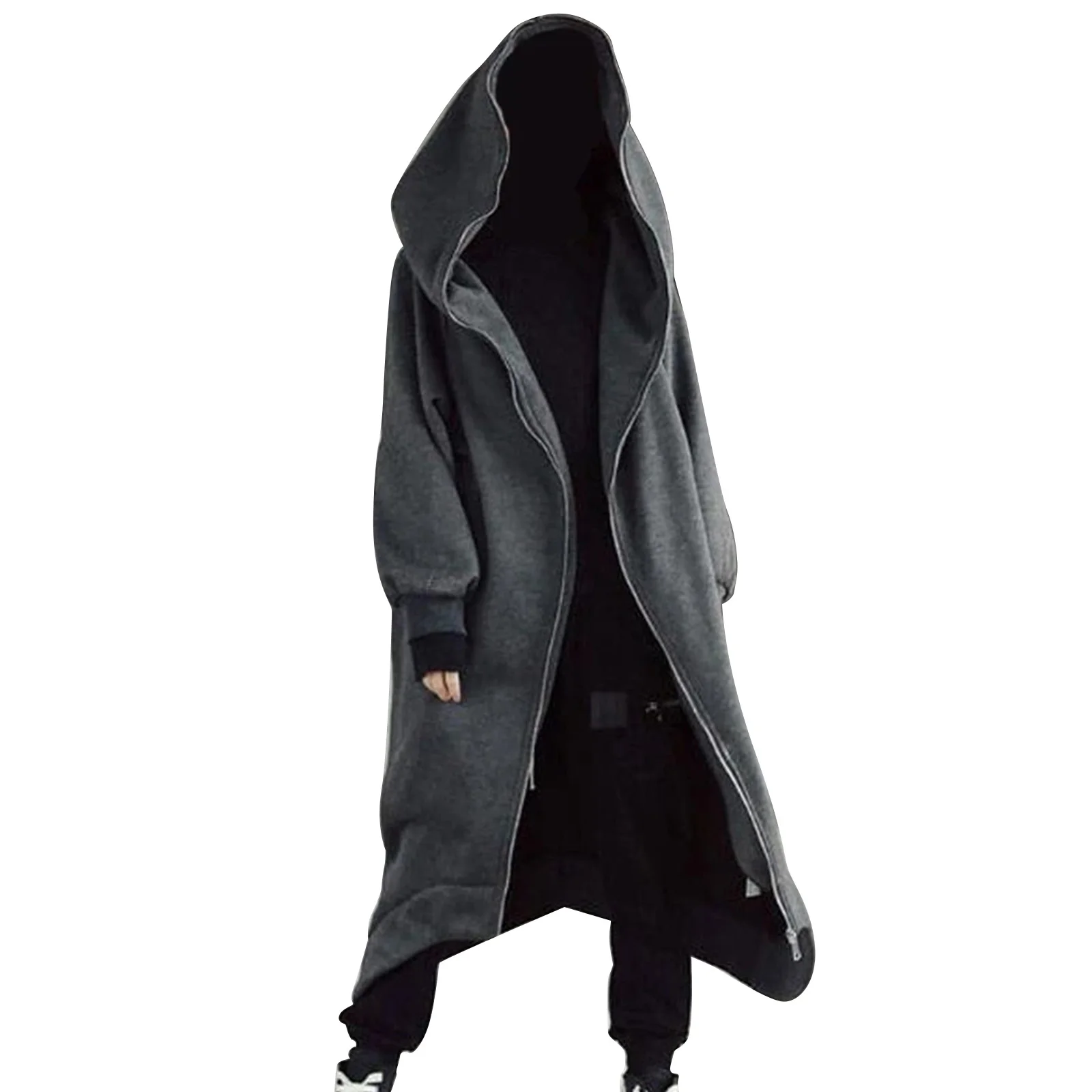 Длинное пальто унисекс с капюшоном и длинным рукавом, на молнии, на флисовой подкладке, 2020 мужская одежда