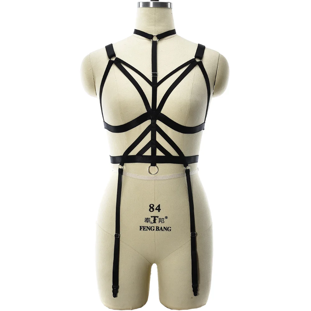 Панк подвязка в готическом стиле, пояс, открытое, с бондаж привязной ремень сексуальное белье Топ тела набор для клетки черный Для женщин жгут боди