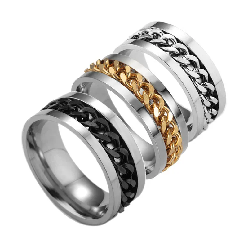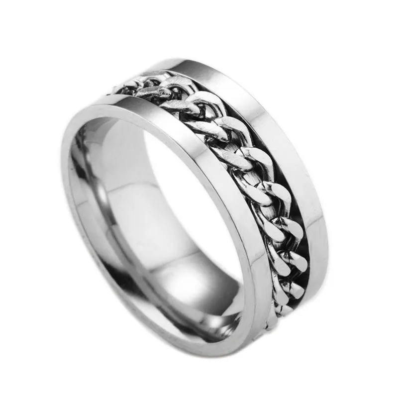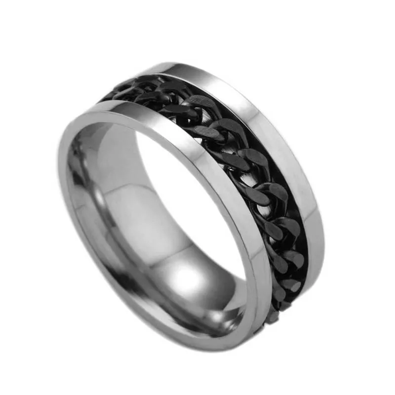 Мужское кольцо-цепочка из нержавеющей стали, вращающееся декомпресс...
