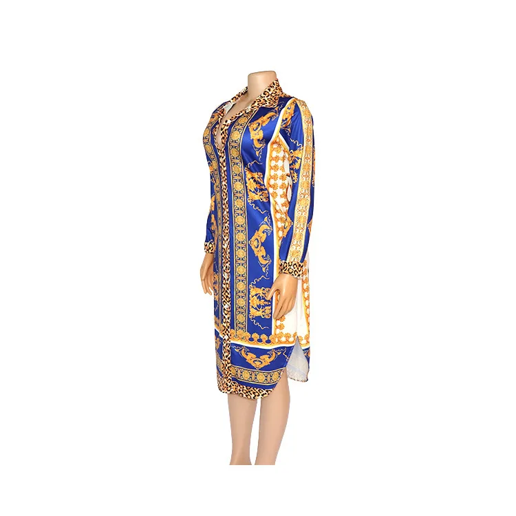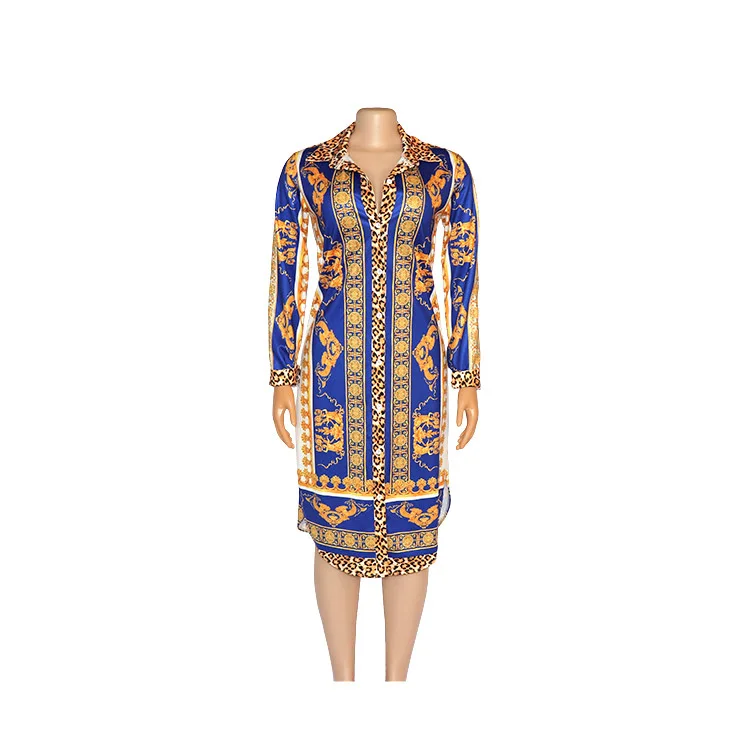 Женское платье-рубашка с принтом, желтое или синее платье на пугови...