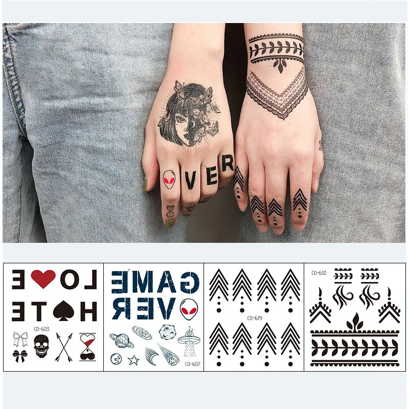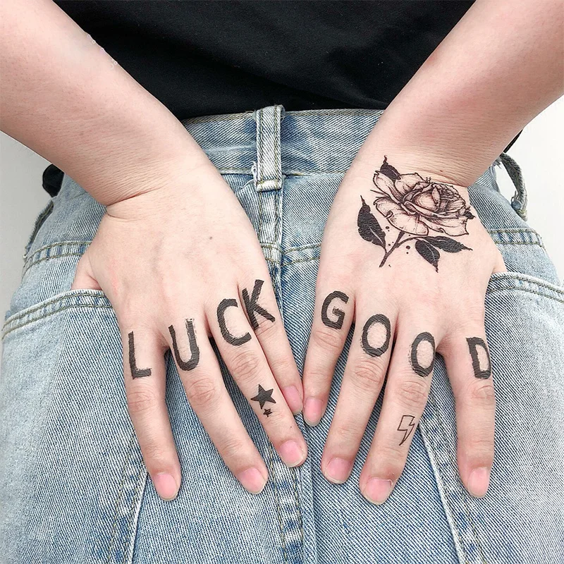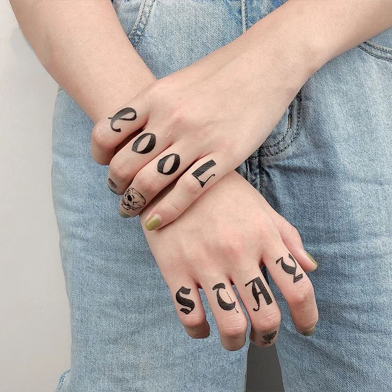 12 шт.упак. пальцев руки Временные татуировки Стикеры английские буквы Водонепроницаемый штаны с фальш-вставкой, на руках и ногах татуировки золотого и серебряного Стикеры, оптовая продажа