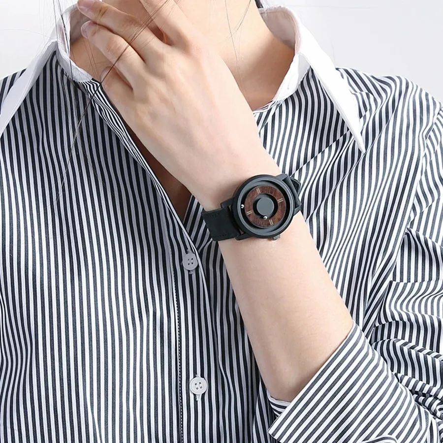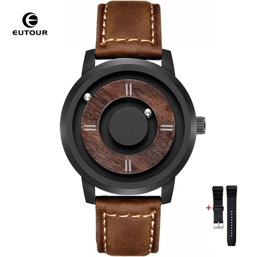 Часы наручные EUTOUR мужские с деревянным магнитным шариком, Роскошные Кварцевые, с деревянным браслетом из нержавеющей стали, 2021