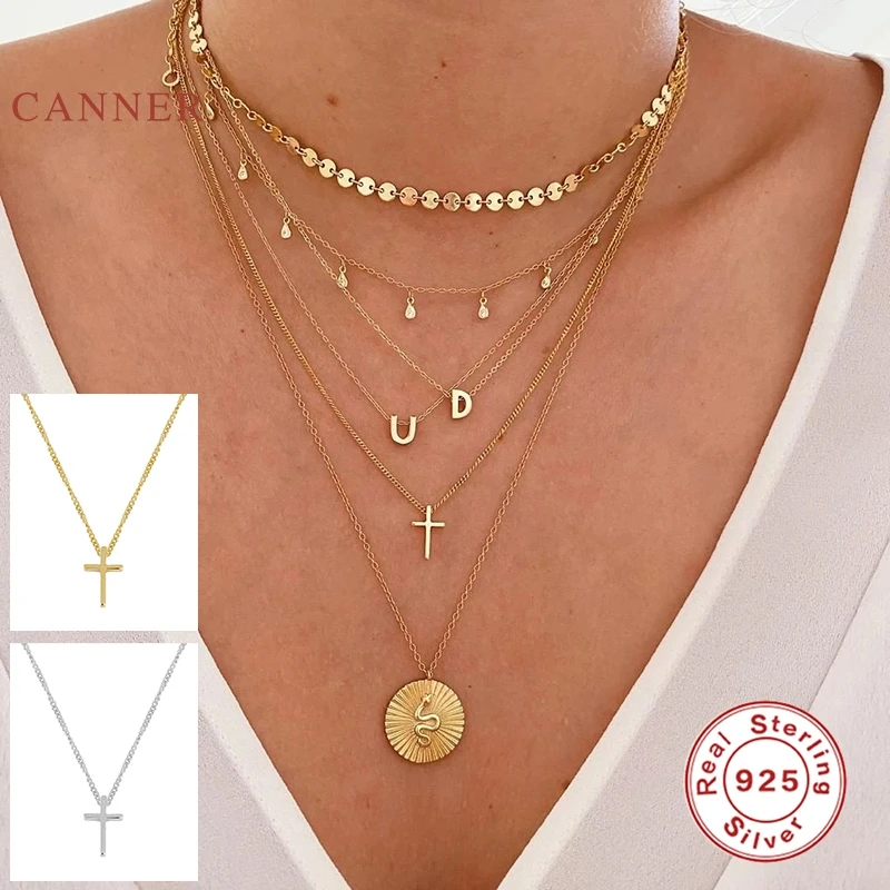 CANNER Ins модное простое ожерелье с крестом из настоящего серебра 925 пробы для женщин 2020 ювелирное изделие очаровательное колье с подвеской Bijoux Collar