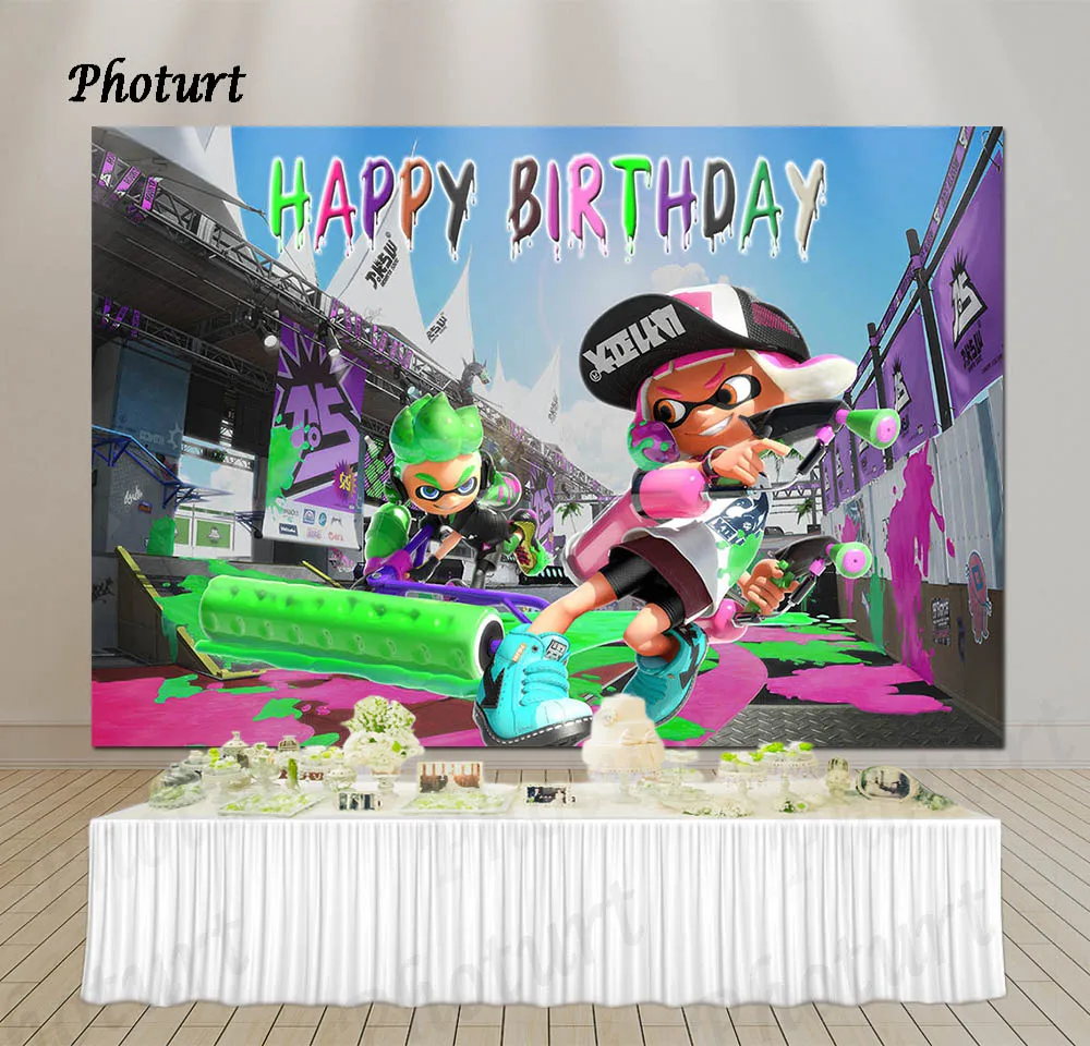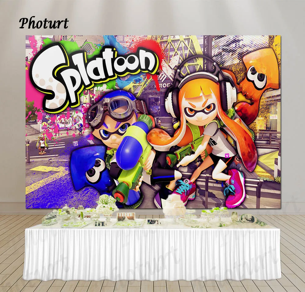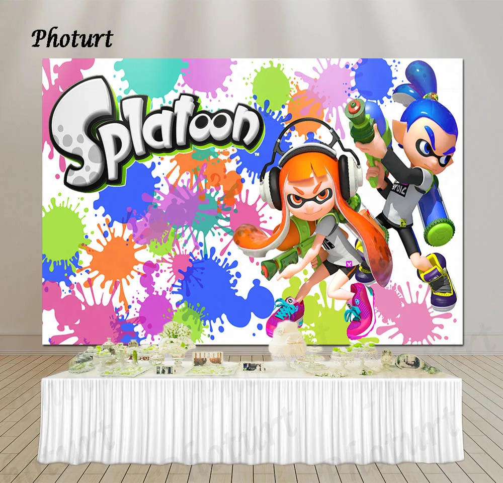 PHOTURT Splatoons фон Дети День рождения фон для фотосъемки с изображением цветное граффити фото фон реквизиты-украшения