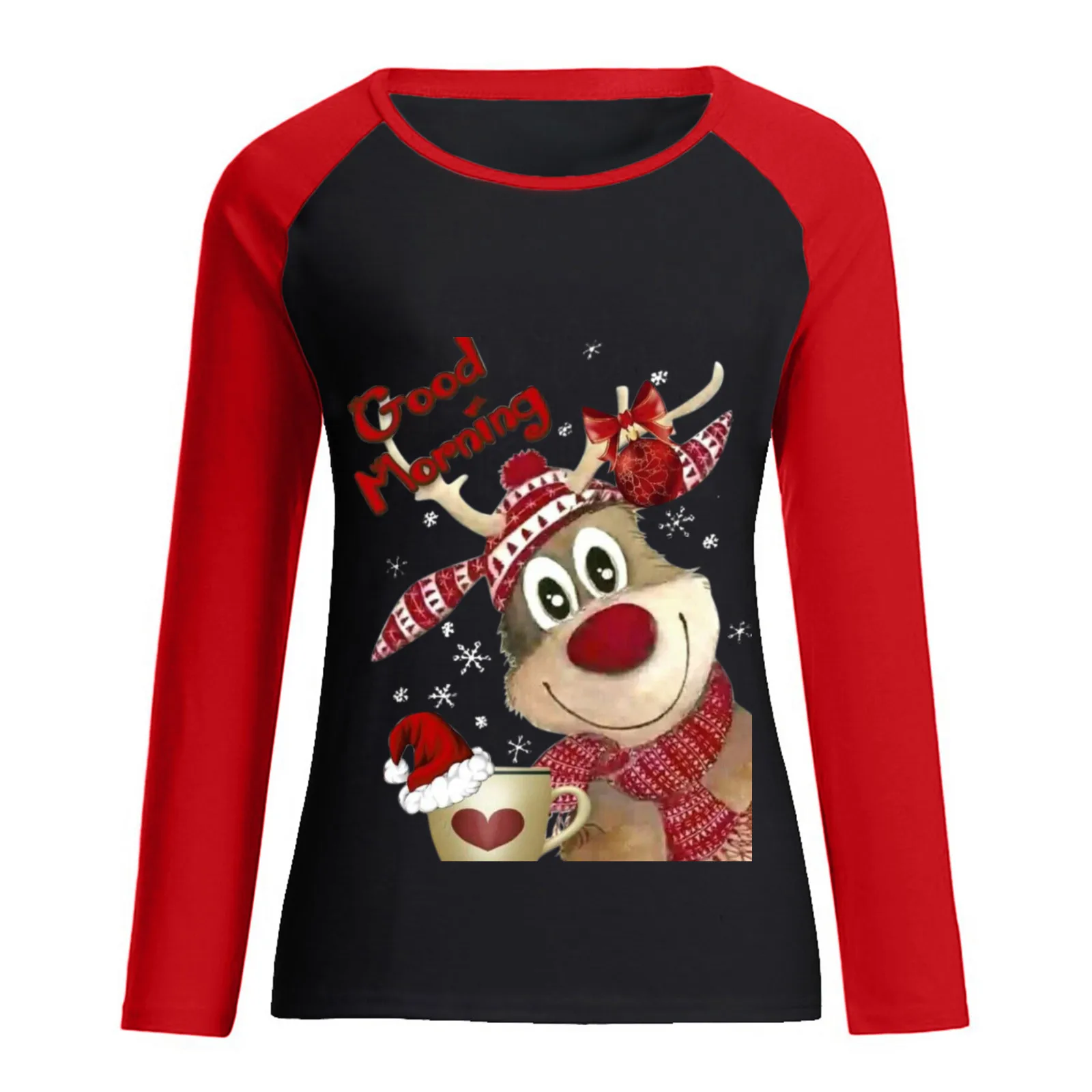 Женский Повседневный реглан с рождественским принтом и длинным рукавом футболки блузки