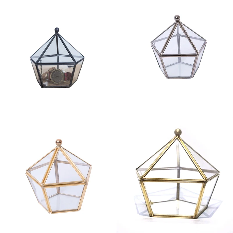 Шестигранная коробка с геометрическим кольцом, прозрачная стеклянная коробка для ювелирных изделий, Свадебный чехол для ювелирных изделий, бессмертный цветок с крышкой, Домашний Настольный ОрганайзерОсобенности товара:Цвет: медь/золото/бронза/черныйРазмер: 12*12*12 смМатериал: стеклоФорма: ПентагонКатегория продукта: коробка для храненияСтиль: ЕвропаРемесло: покрытиеПрименимое Расположение: гостиная, спальня, комод, кабинет, свадьба, вечерниеПосылка: 1 шт. коробка для хранения