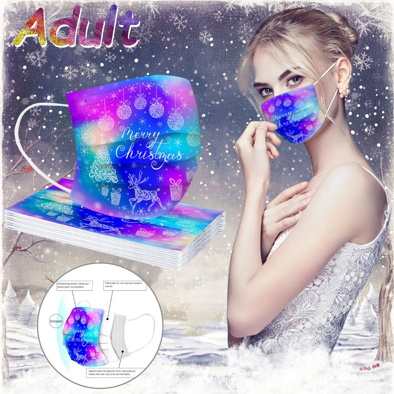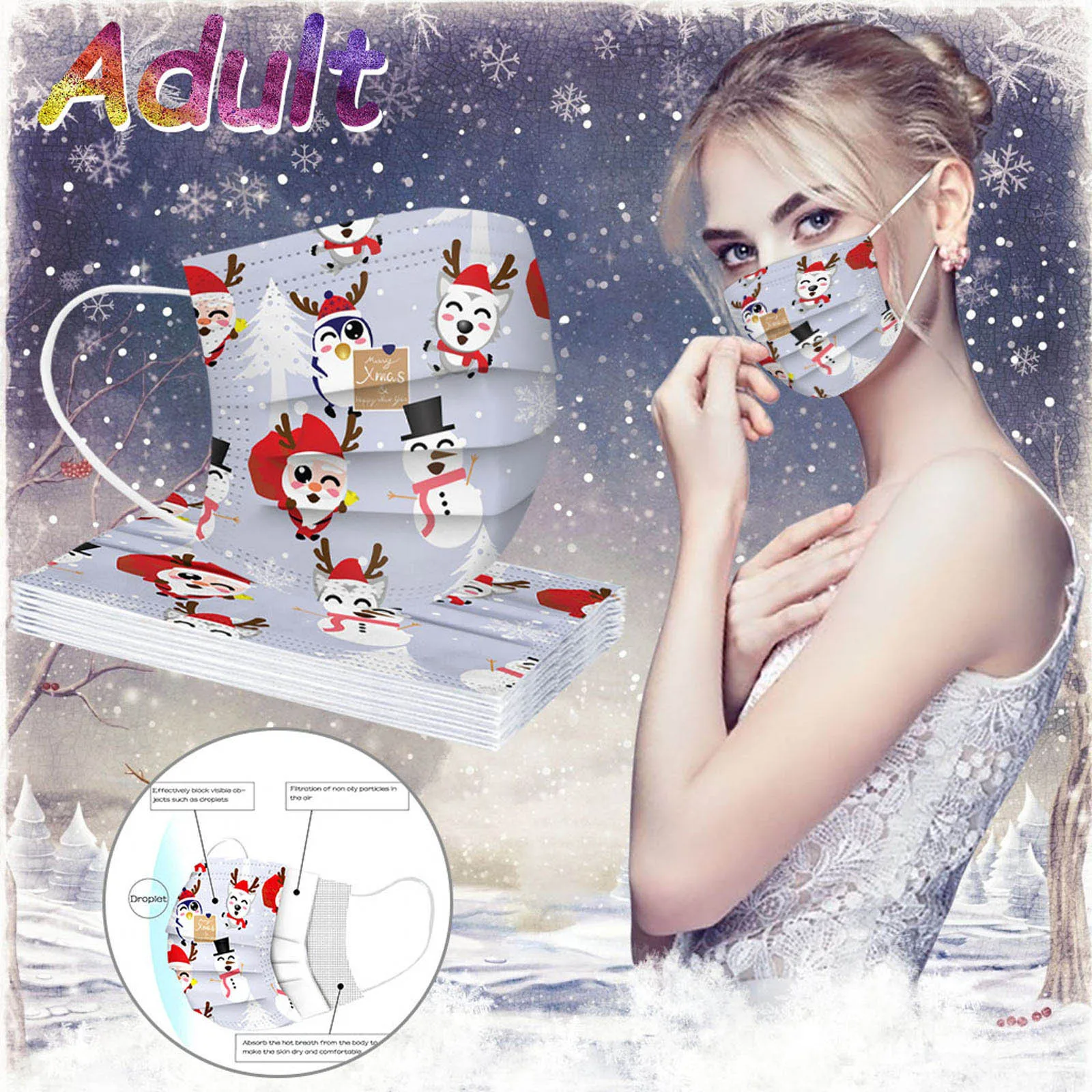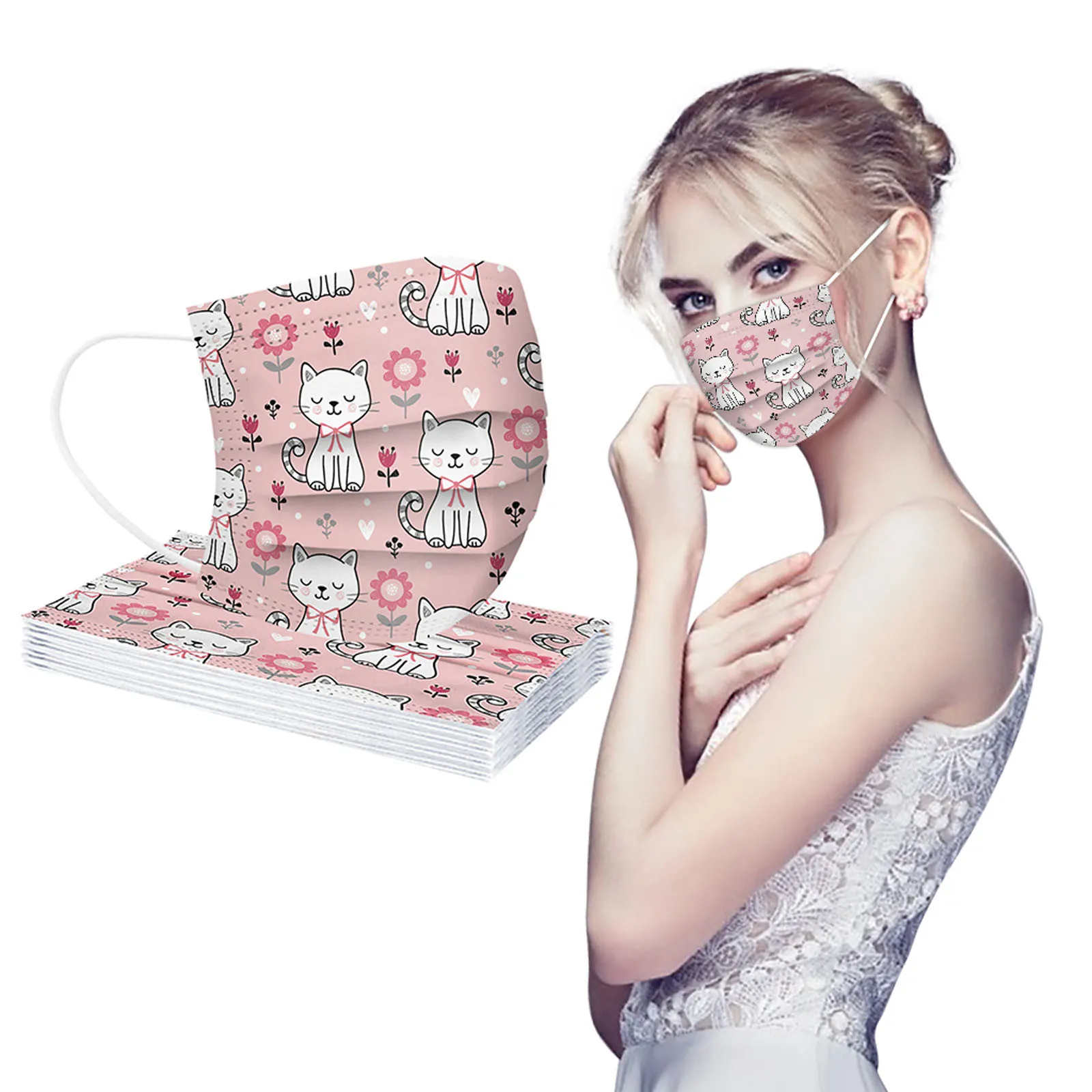 В 3 слоя Нетканая одноразовая маска изготовлена из 3 слоев нетканого материала, Безопасен и безопасен для использования. Дышащий материал и милый Узоры, которые делают его полезным и модным. Специальный 3 слоя из нетканого материала Дизайн, обеспечивает некоторую защиту от пыли, автомобильных выхлопных газов, Пыльца и т. д. эластичная Ушная петля, легко носить и не давит на уши. Маникюрный салон или любые другие области, где может потребоваться защита