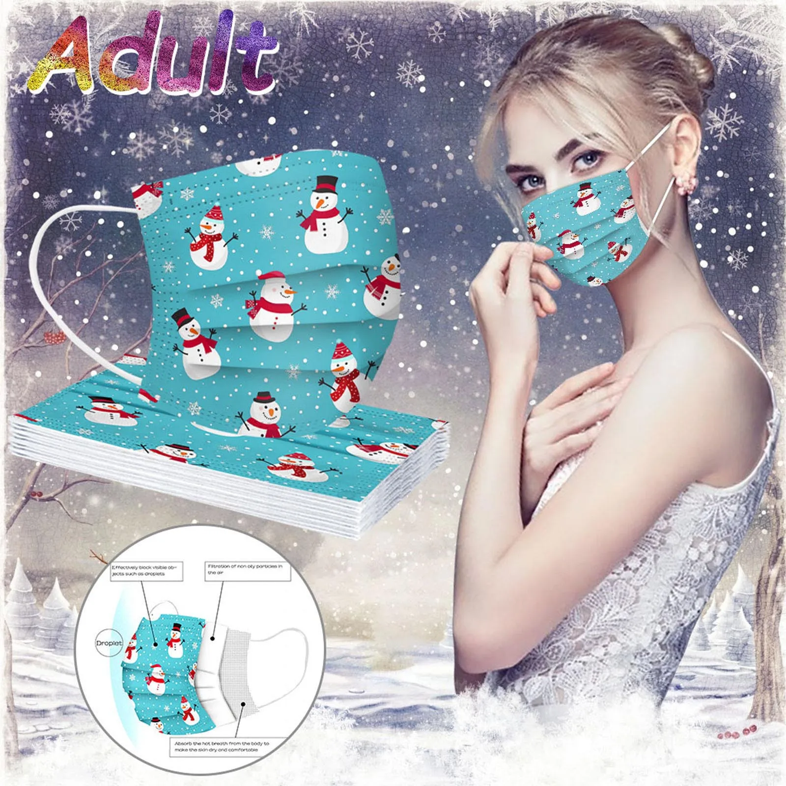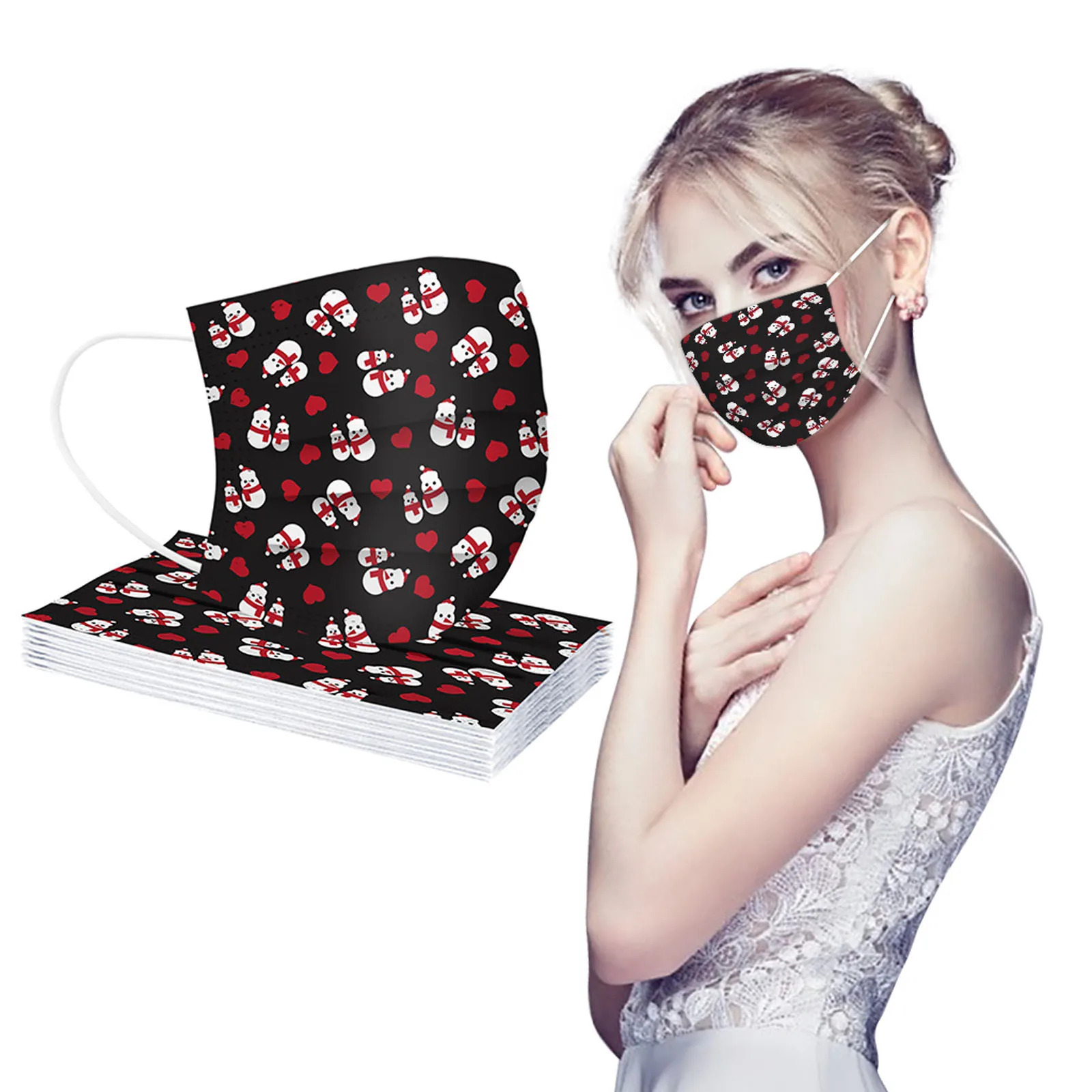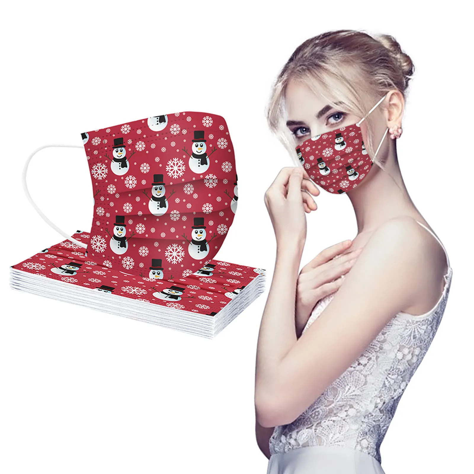 10 шт. Рождественская одноразовая маска для детей с принтом Снежинка с защитная маска для лица 3 слоя Фильтр Пылезащитная маска для лица Обложка для рта