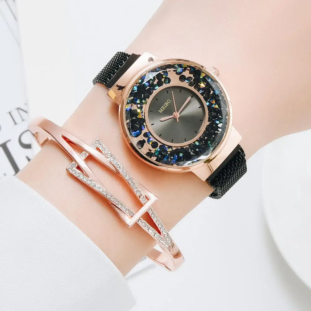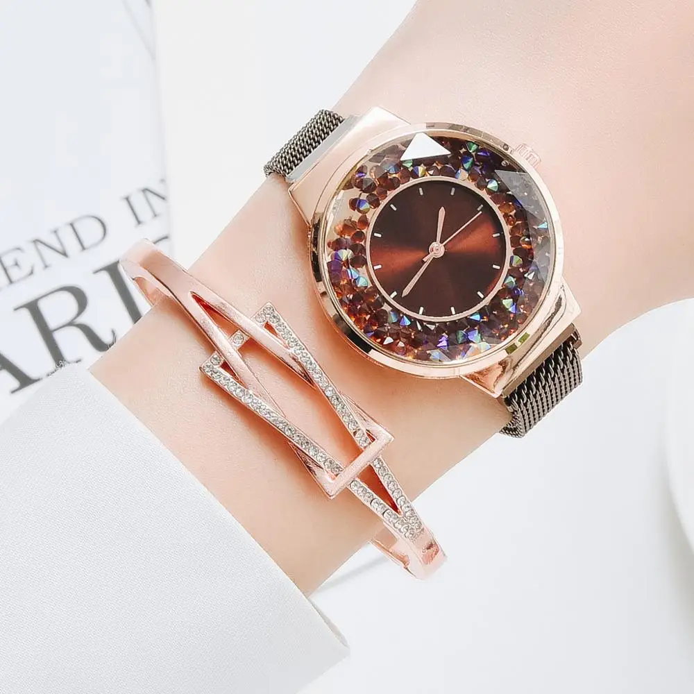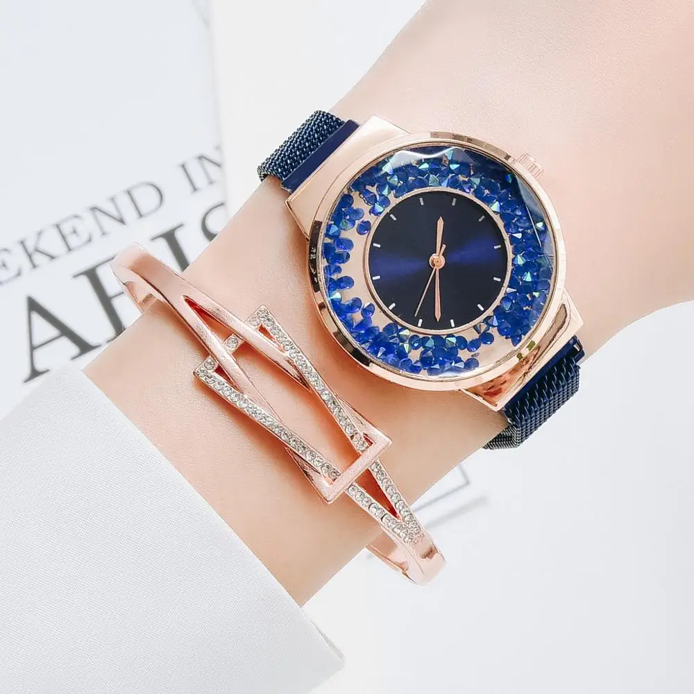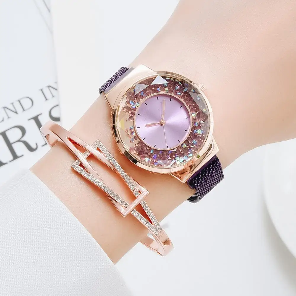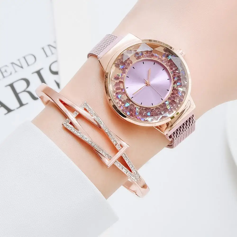 Для женщин часы Новая мода магнит ремешка женские туфли-лодочки; Цвет РОЗОВЫЙ, наручные часы, кварцевые наручные часы класса люкс прокатки Стразы Часы Relogio Feminino
