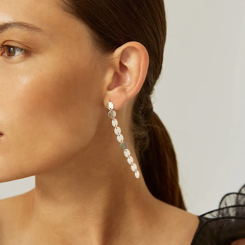 Серьги-гвоздики женские из серебра 100% пробы, с бумажной цепочкой