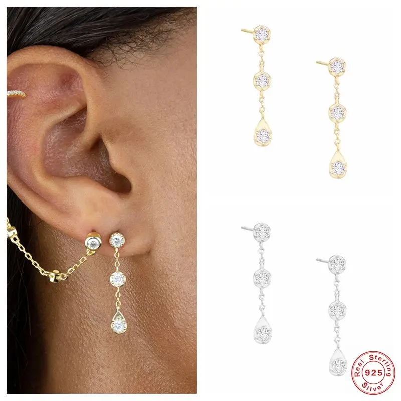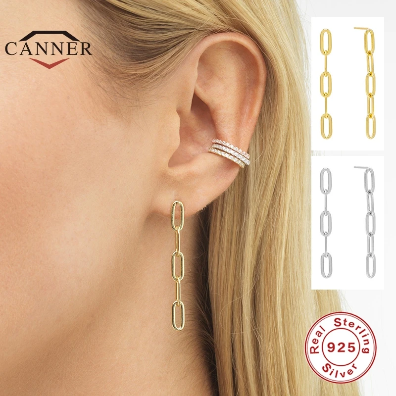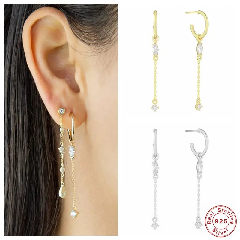 Автоклав 925 стерлингового серебра серьги-гвоздики для женщин Новая мода Скрепка цепи серьги в стиле пирсинга, ювелирное изделие, подарок Pendientes