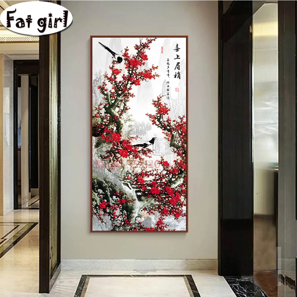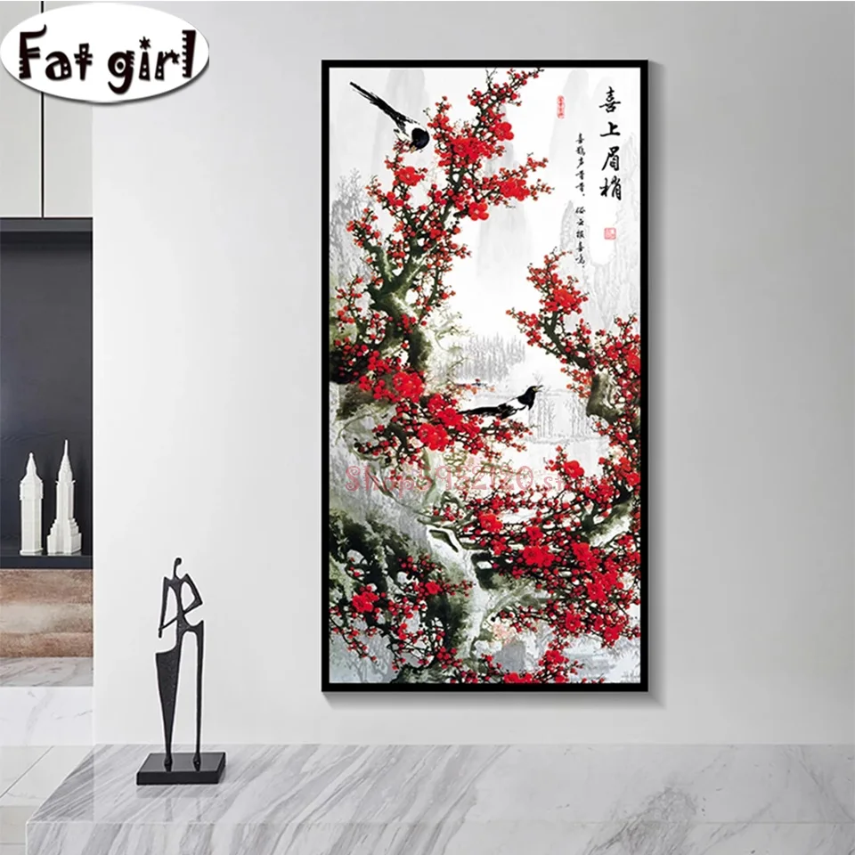Китайский стиль цветок сливы Алмазная картина Magpie 5D Вышивка крестом мозаика квадратная круглая вышивка Стразы Декор для гостиной