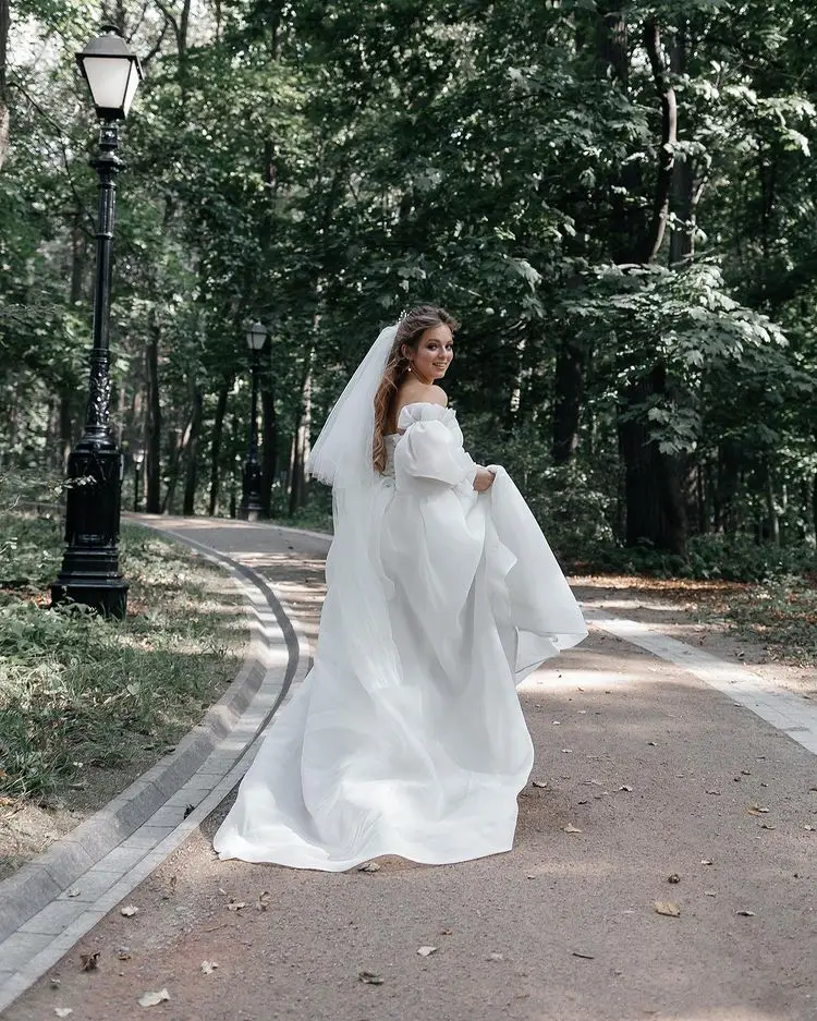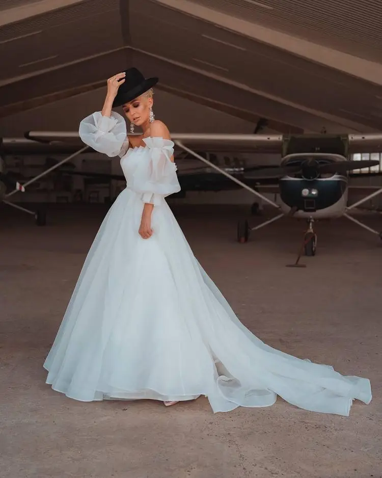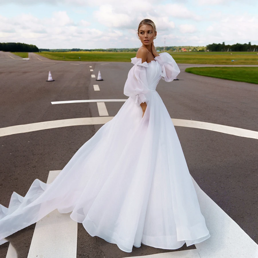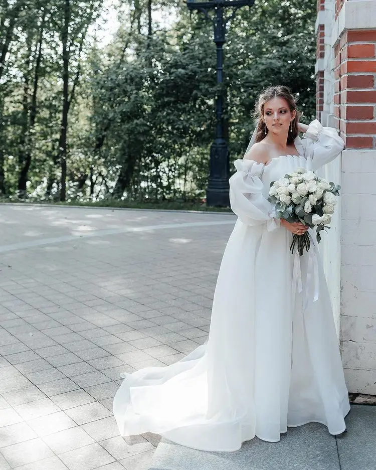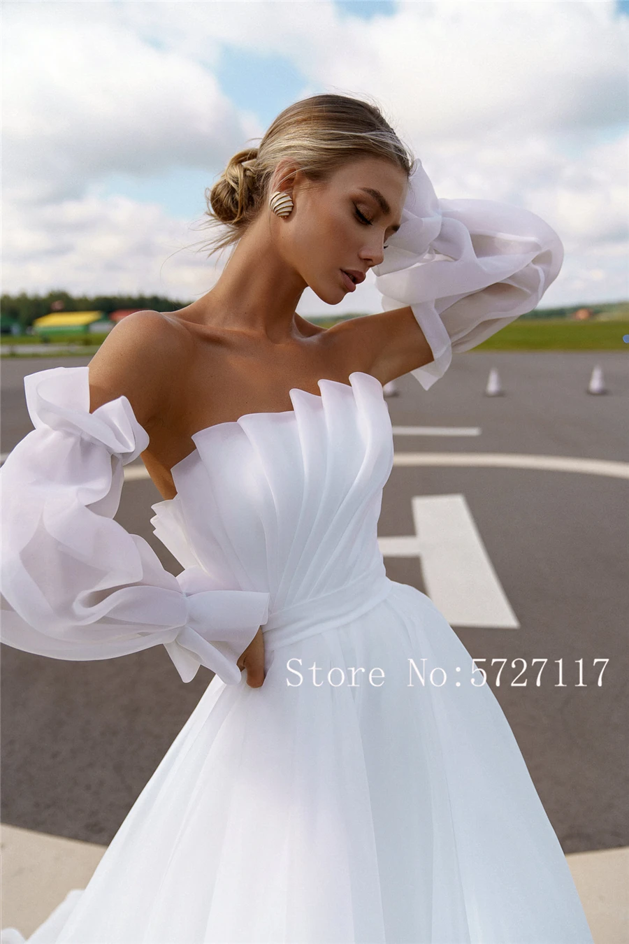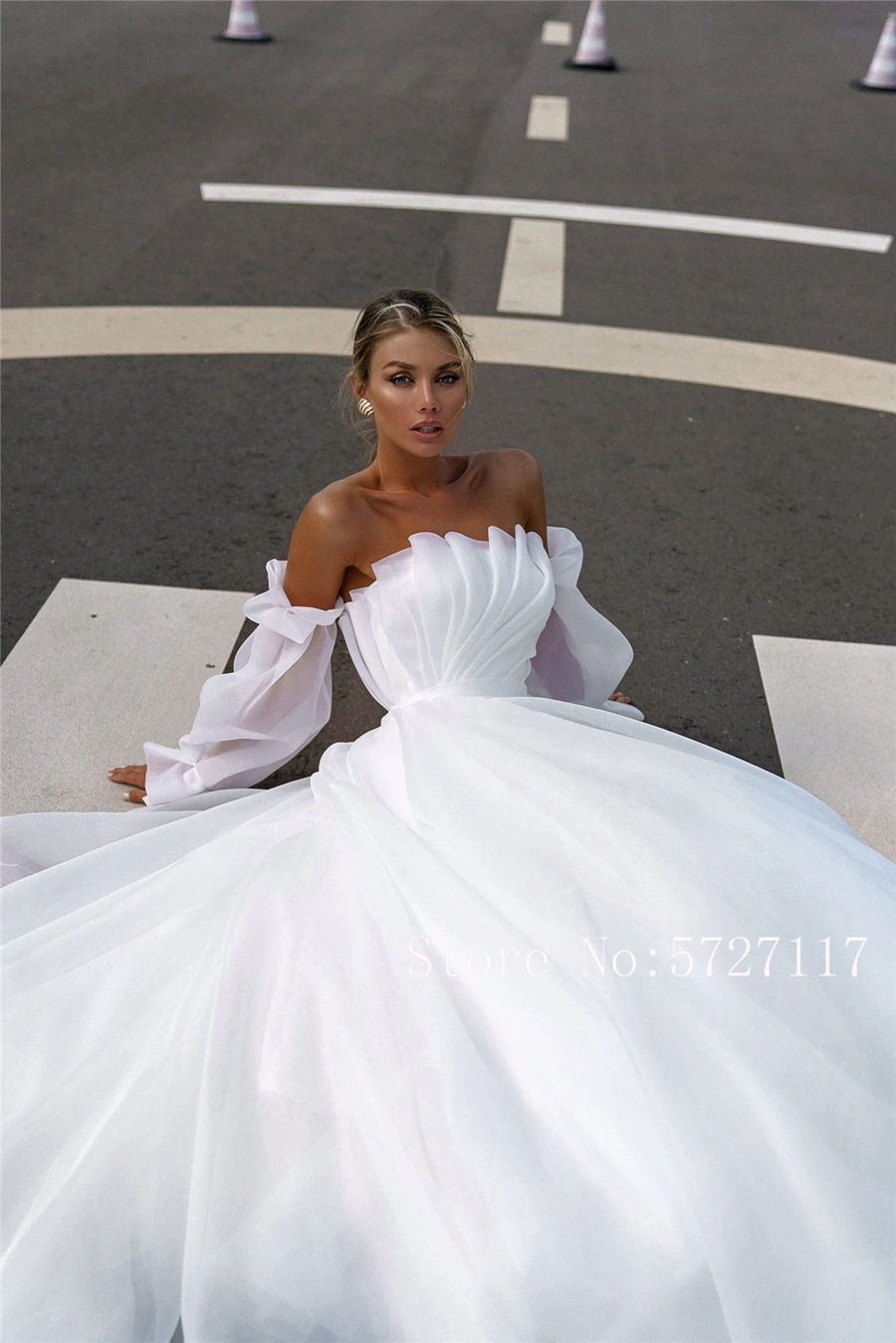 Бальное платье без бретелек с рюшами лиф 2080 свадебное платье из органзы со съемными длинными рукавами Свадебные платья в стиле ампир
