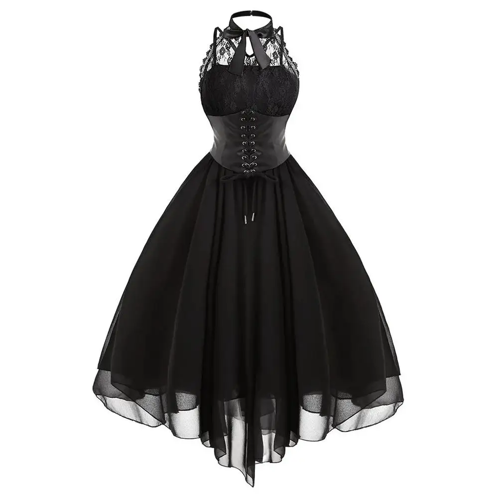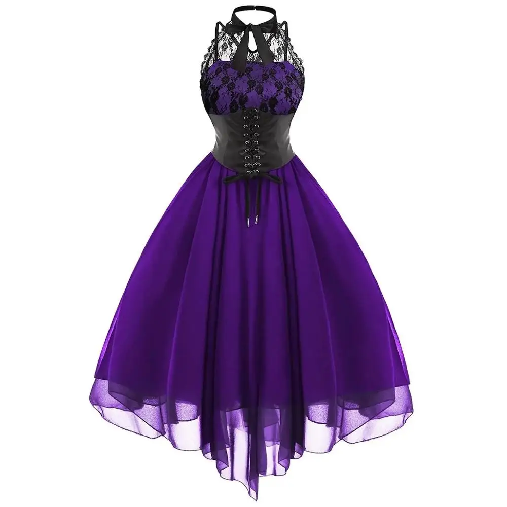 Женское винтажное платье с лямкой на шее, однотонное шифоновое платье в стиле рокабилли, модель 2020 на лето