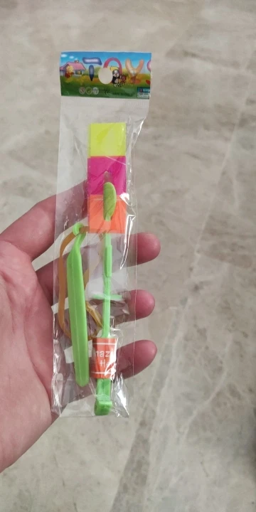 Yo pedí el modelo que lleva un tirachinas de esta forma es más cómodo para los niños. Pero esta bien.