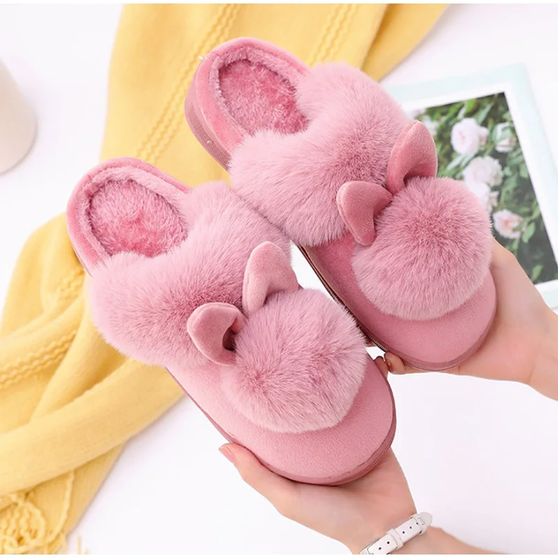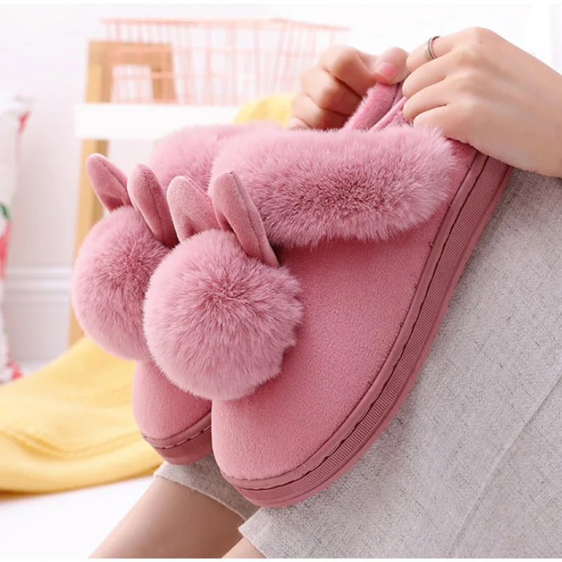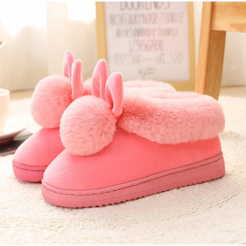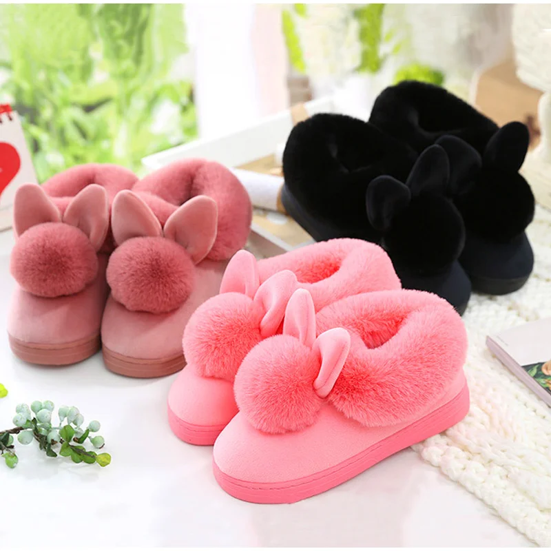Женские зимние тапочки, бархатные Снежные Женские тапочки, домашняя обувь, повседневная женская мягкая удобная обувь, женская плюшевая обувь с меховыми кроличьими ушками
