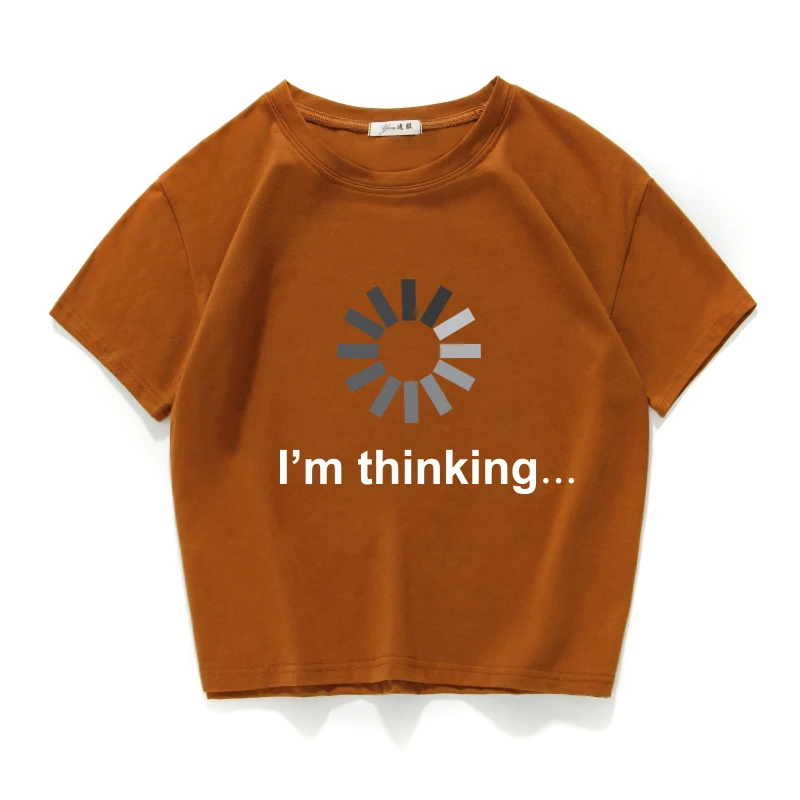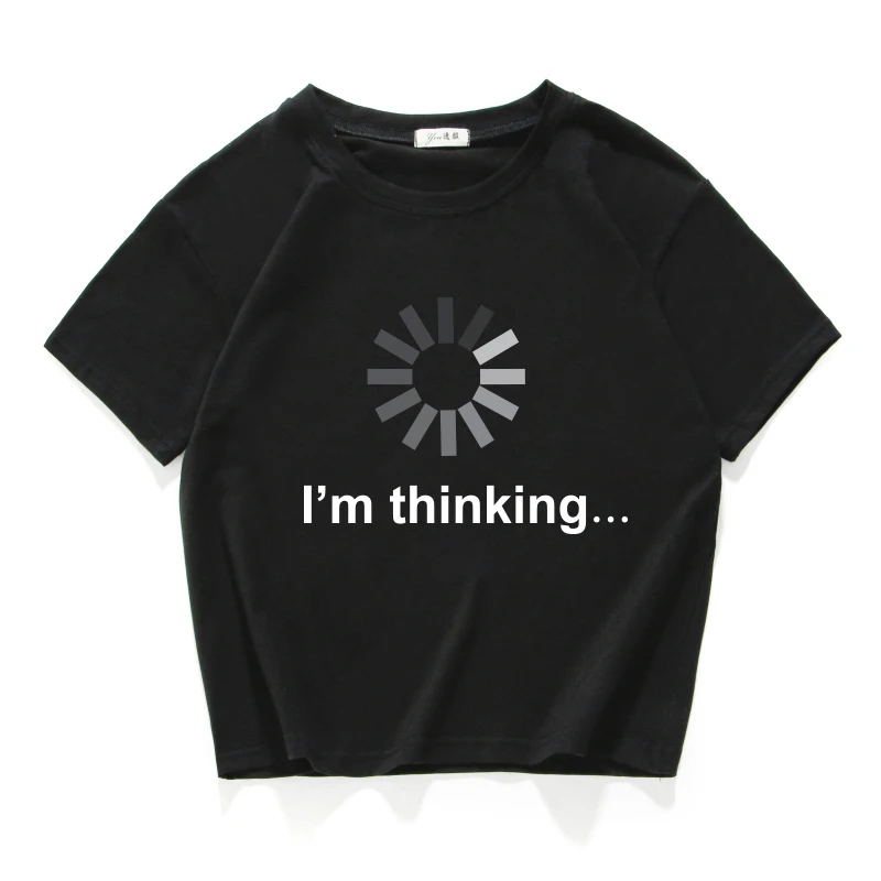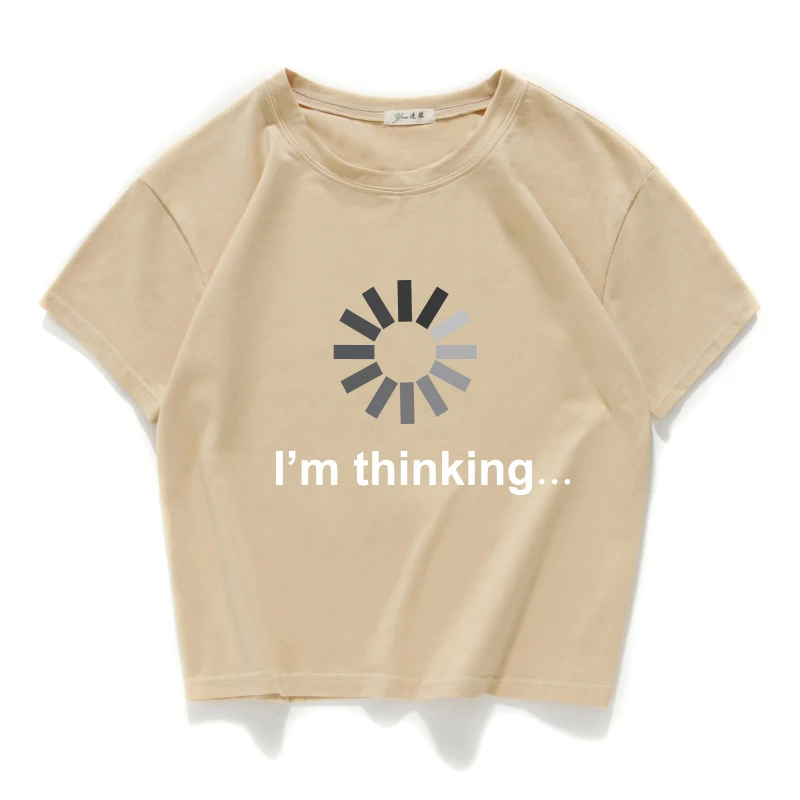 Кроп-Топ женский с забавными буквами из 100% хлопка с надписью i am thinking