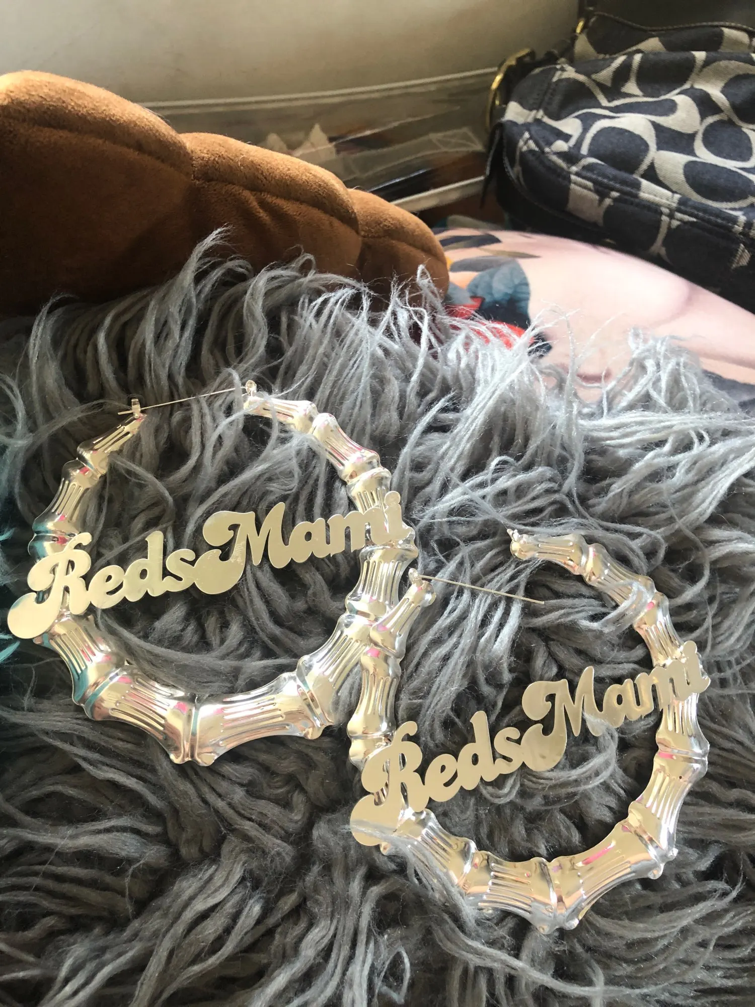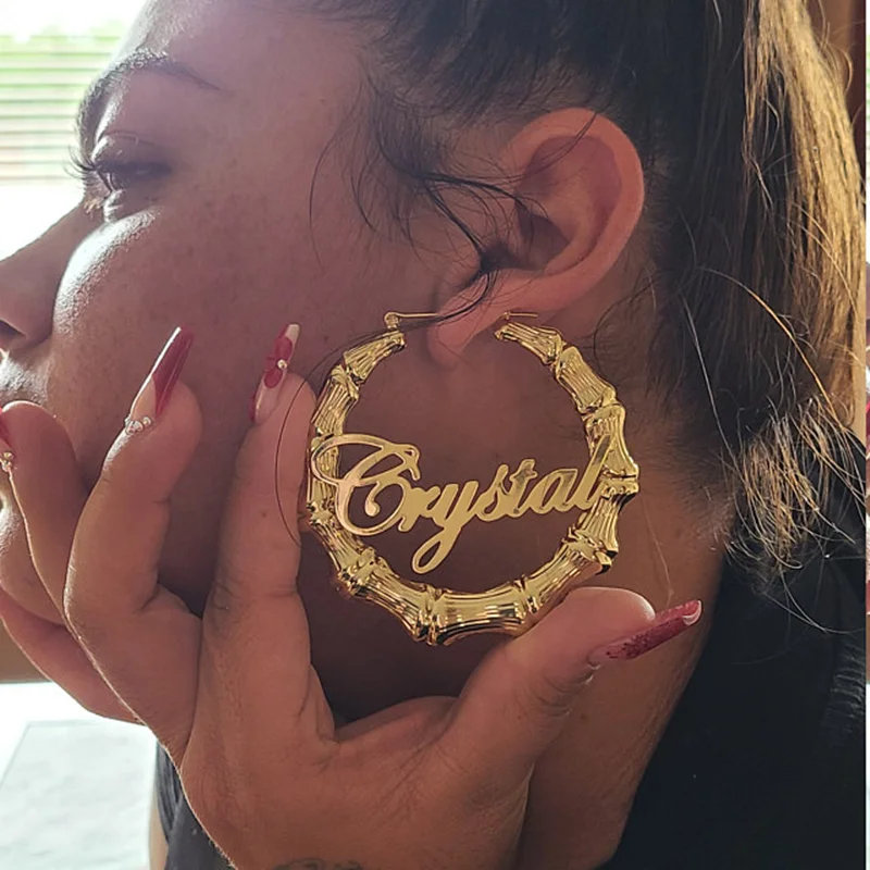Серьги в БАМБУКОВОМ стиле с надписью, 30-100 мм
