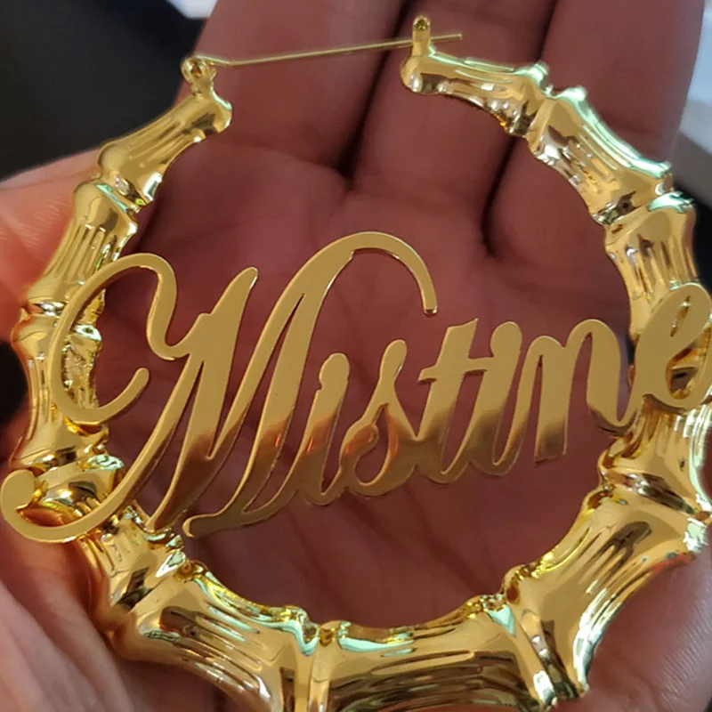 Индивидуальные серьги из бамбука, персонализированные именные серьг...