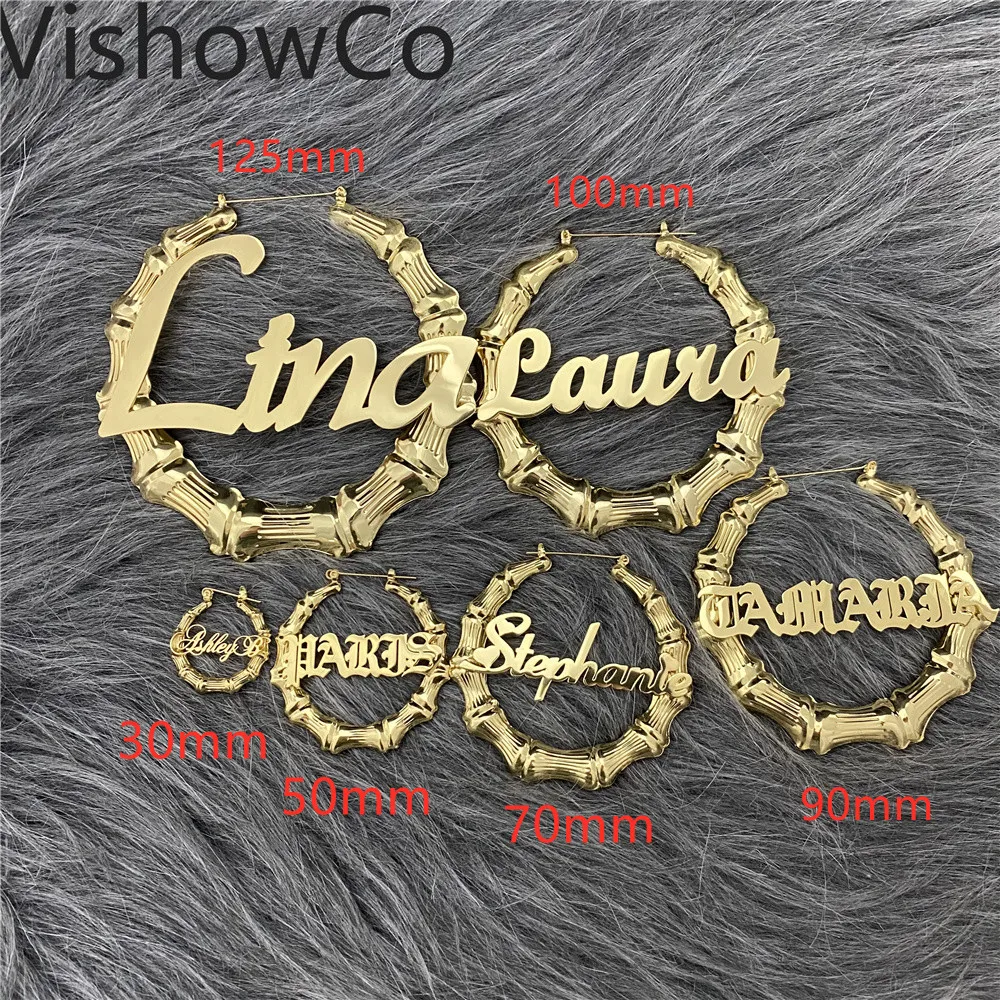 VishowCo бамбуковые обручи персонализированные серьги из нержавеюще...
