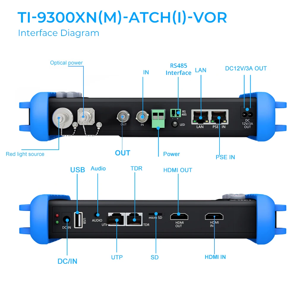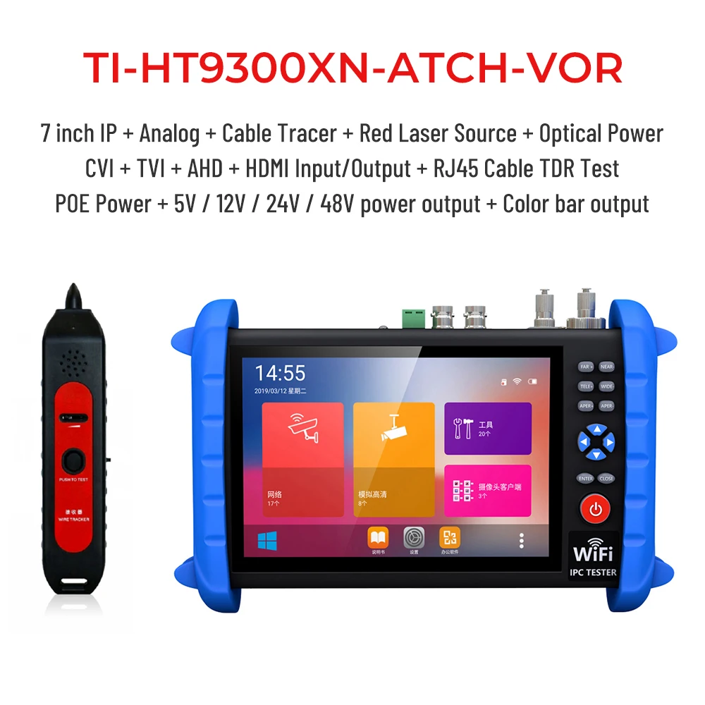 TI-9300XNM-ACTHI-VOR: аналоговый + сетевой + CVI/ TVI/ AHD/ SDI + мультиметр + линейный охотничий + TDR точка останова + красный источник света + оптический измеритель мощности + Цветовая полоса выхода + HDMI вход/выход + poe + 4 виды выходная мощность 5V / 12V/ 24V/ 48V