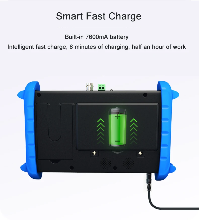 Модель продукта: IPCX тестер видеомонитора Сенсорный экран: 7 дюймов G + G структура емкостного экрана ЖК-экран: 7 дюймов разрешение 1920 × 1200 IPS HD full view Порт Ethernet: 10/100/1000 м адаптивный WIFI: встроенный беспроводной WIFI, скорость 150 м Тест ip-камеры: 4K H.265 тест ip-камеры, отображение видео изображения в реальном времени без задержек, поддержка видео-снимка, запись и воспроизведение ONVIF: инструмент ONVIF, Поддержка DAHUA, HIKVISION,ACTI,SAMSUNG и Другие более 30 производителей, индивидуальные протоколы, поддержка установки мобильного клиента камеры Управление PTZ: поддержка Pelco-D/P, Samsung, Panasonic и т. д. более 30 протоколов CVBS тест аналоговой камеры: l канал CVBS аналоговый сигнал вход, поддержка PAL/NTSC формат адаптация Тест hd-камеры: Поддержка HD TVI 8MP, CVI 8MP, AHD 5MP