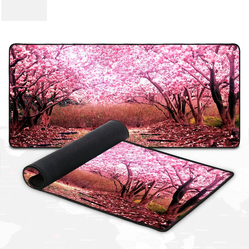 Коврик для мыши с цветами вишни, большой удлиненный розовый коврик ...