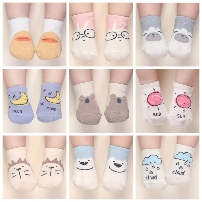 Нескользящие хлопковые носки для маленьких мальчиков и девочек, нескользящие носки с героями мультфильмов для новорожденных, нескользящие носки для детей, аксессуары для детей