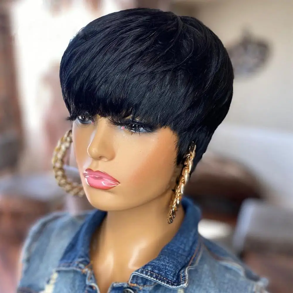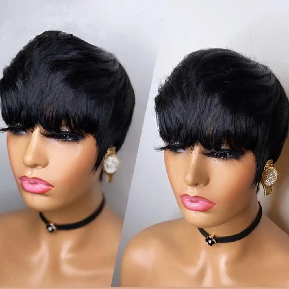 Парик Alibele короткий, стрижка Пикси, натуральные волосы, перуанские, прямые, Реми, парики для женщин, 150% бесклеевой парик, бесплатная доставка