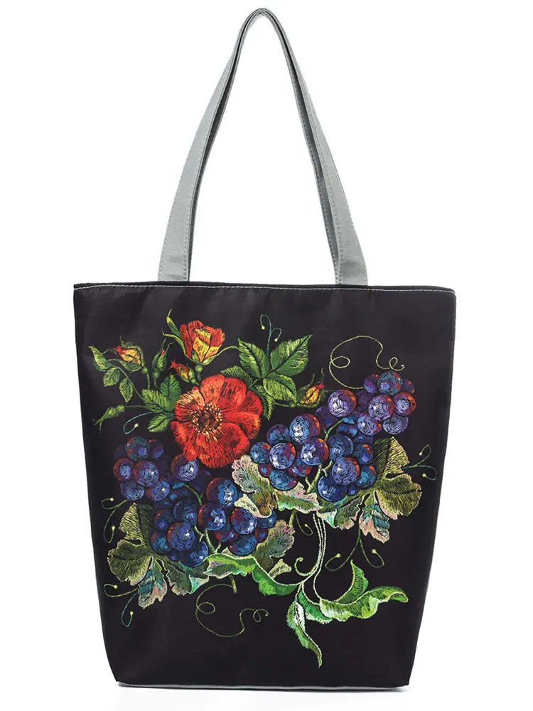 Женская тканевая сумка, модная Яркая сумка с цветочной вышивкой и принтом птиц, женская сумка на плечо, летняя женская Экологичная Сумка-тоут для покупок