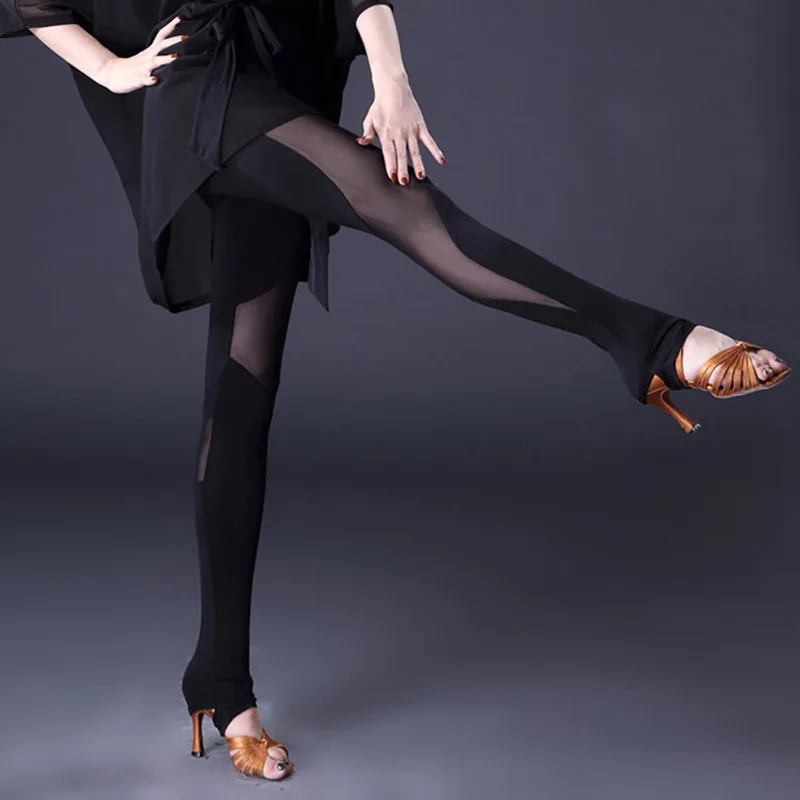 Женские сетчатые брюки для латиноамериканских танцев, черная тренировочная одежда, женский костюм для танго, танго, танцевальная одежда ча-ча, танцевальная одежда DL7072