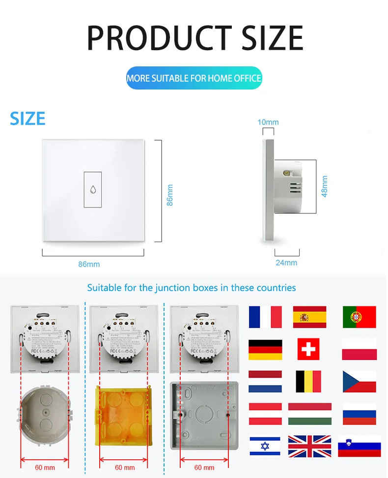 1. Этот сенсорный выключатель Wi-Fi должен подключаться к нейтральной линии.2. Умная розетка поддерживает только Wi-Fi сеть 2,4 ГГц, не поддерживает сеть 5 ггц.3. Переключатель котла не регулирует температуру.