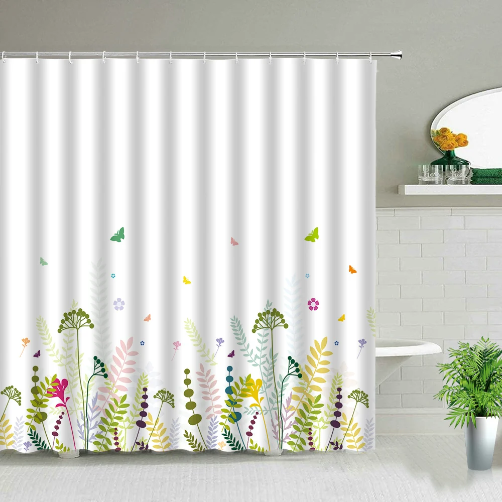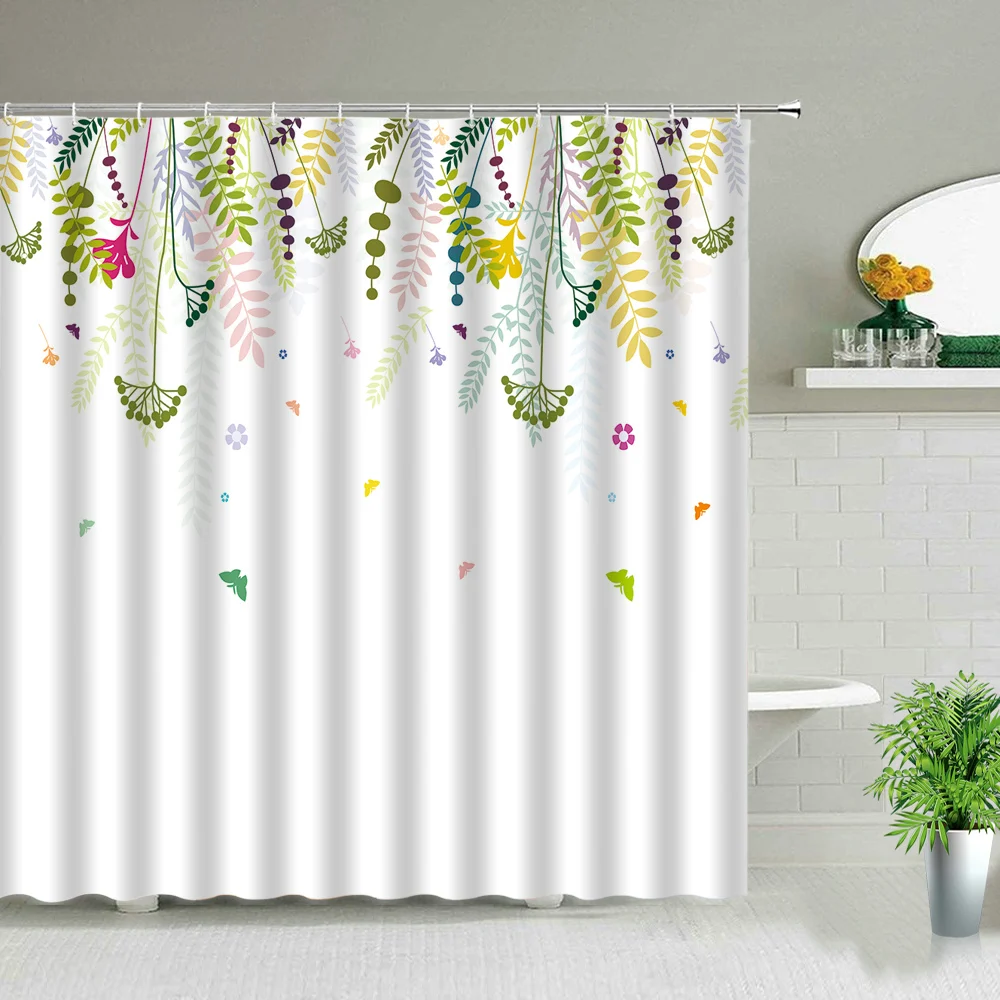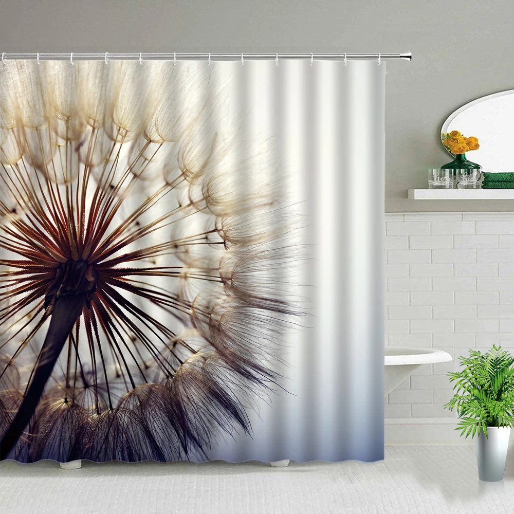 Занавеска для душа, водонепроницаемая тканевая штора из полиэстера, с принтом одуванчиков и цветов, с крючками, для ванной комнаты