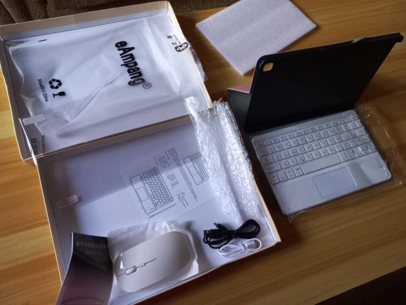 Пришёл быстро за 10 дней доставили в Россию. К планшету мышка и клавиатура подключились быстро,всё работает
